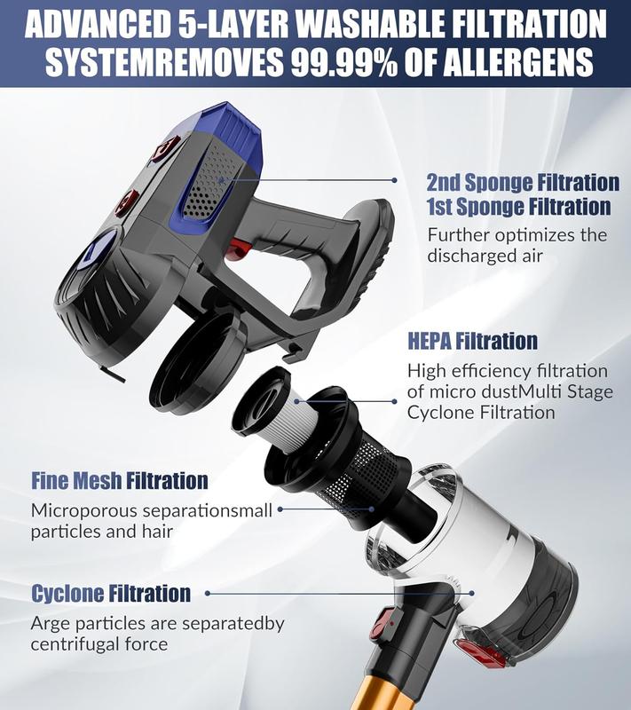 ·Vacuum Cleaner Carpet and Floor - 3 Power mode is available to adjust suction, suitable for different situations of carpet and floor, to adapt to any cleaning needs you need.