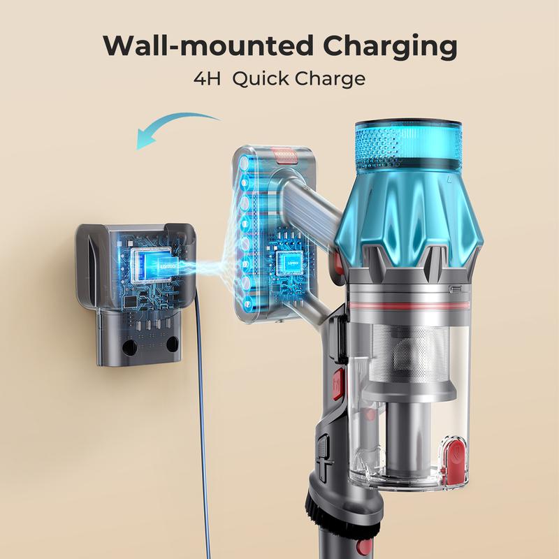 【GREAT AUTONOMY & REMOVABLE BATTERY】Removable 2200mAh battery with 8 built-in batteries for a runtime of 60min (in ECO mode), powerful cordless vacuum cleaner only takes 4-5 hours for a full charge, perfect for a complete house cleaning. The rechargeable wall mount integrates storage and charging, which is very convenient and efficient.