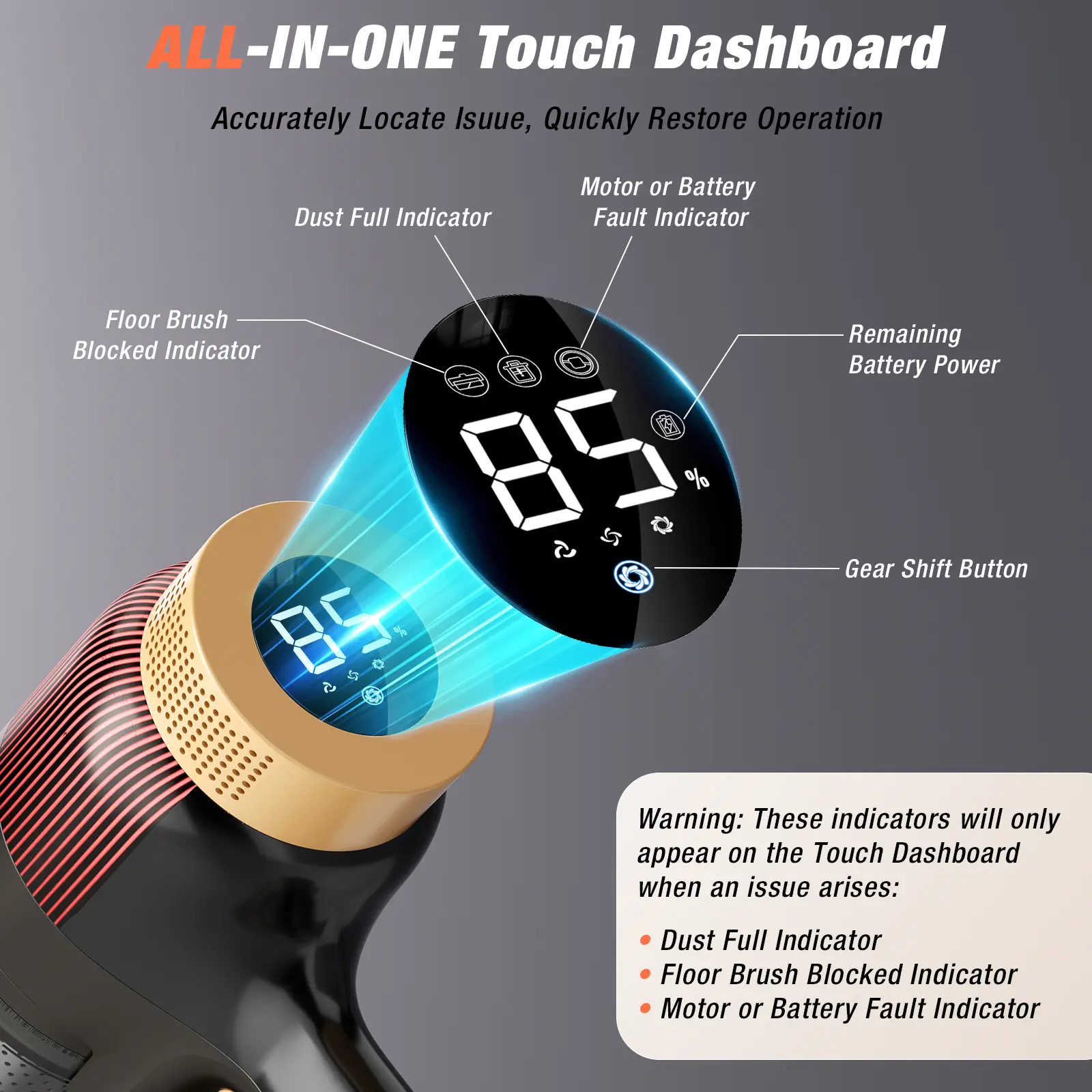 ·【LED Smart Touch Screen】 This home vacuum features an LED smart touch screen for easy suction adjustment and real-time display of battery, dust cup, and filter status. The ergonomic telescopic handle lets you adjust the length for various cleaning needs.