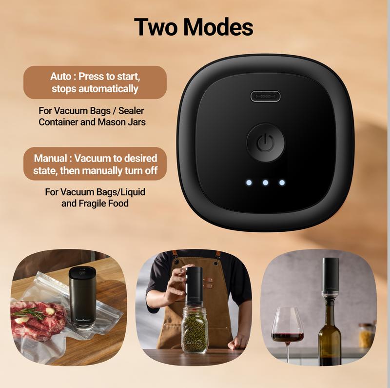 Recommended Use: Multi-use for vacuum sealer bags, wine stoppers, and Mason Jar lids with a built-in leak indicator