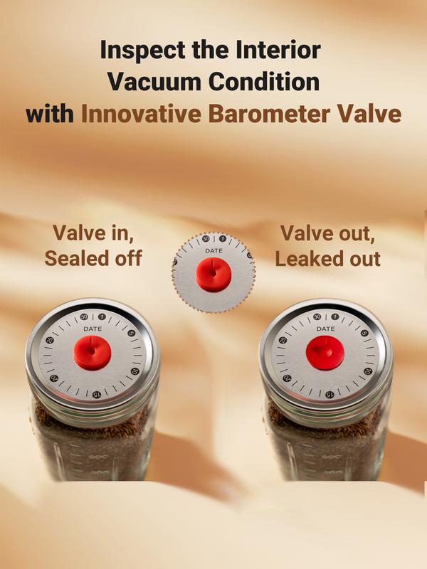 Patented Mason Jar Valve Technology guarantees to keep your food fresh & cacuum sealed for 3 Years