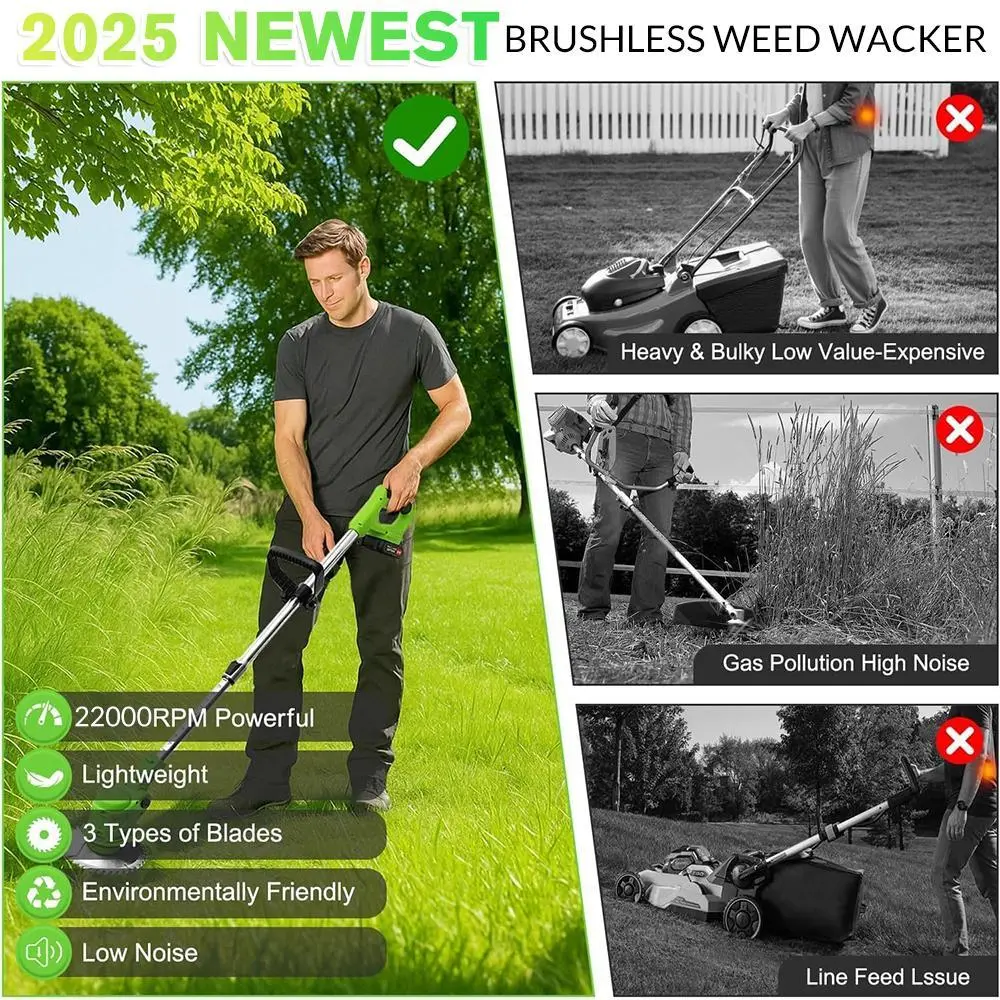 Low Noise: At 2.65lbs (lightest in class) and 68dB operation, this electric weed wacker outperforms gas trimmers with zero emissions. Vibration control tech reduces hand fatigue by 45% - ideal for elderly users and gardeners. Double safety switches and impact-resistant guard provide secure operation near water features and delicate flower beds