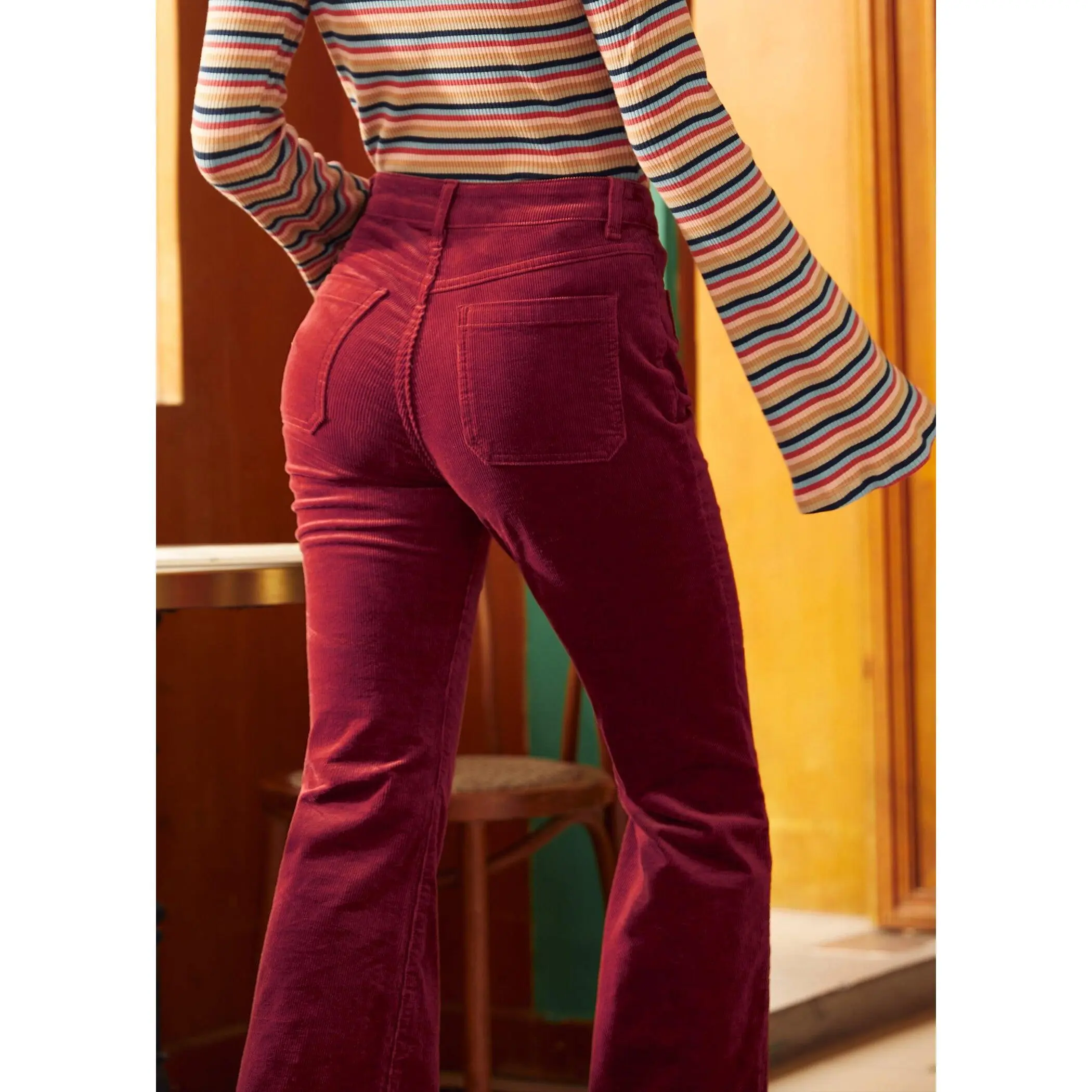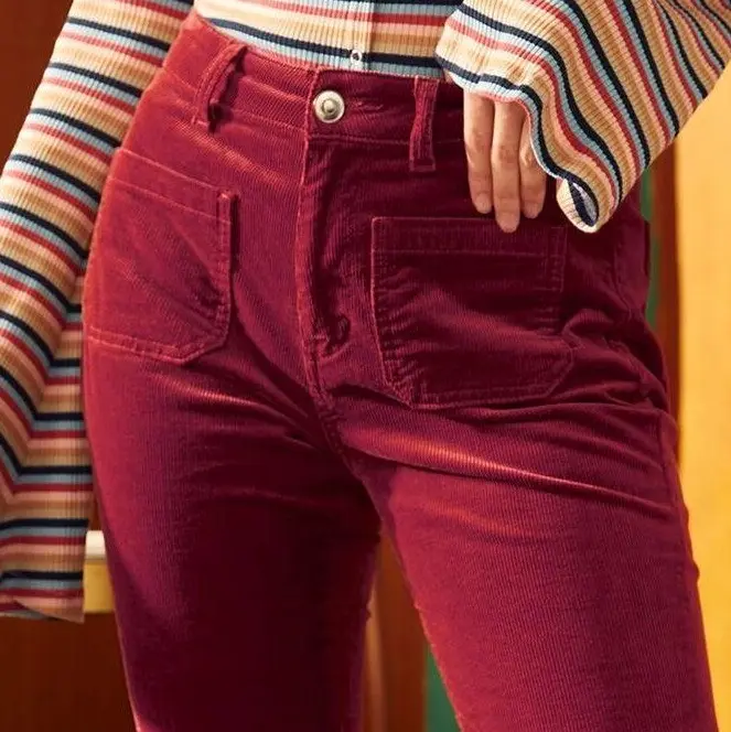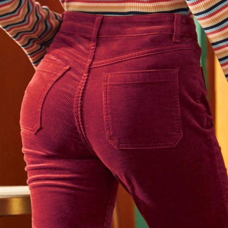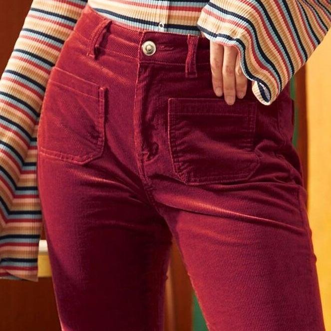 5. ModCloth All Aboard For Corduroy Flare Leg Pants with Pockets, Stretch Cotton - Berry Red (Sizes 2-26W)