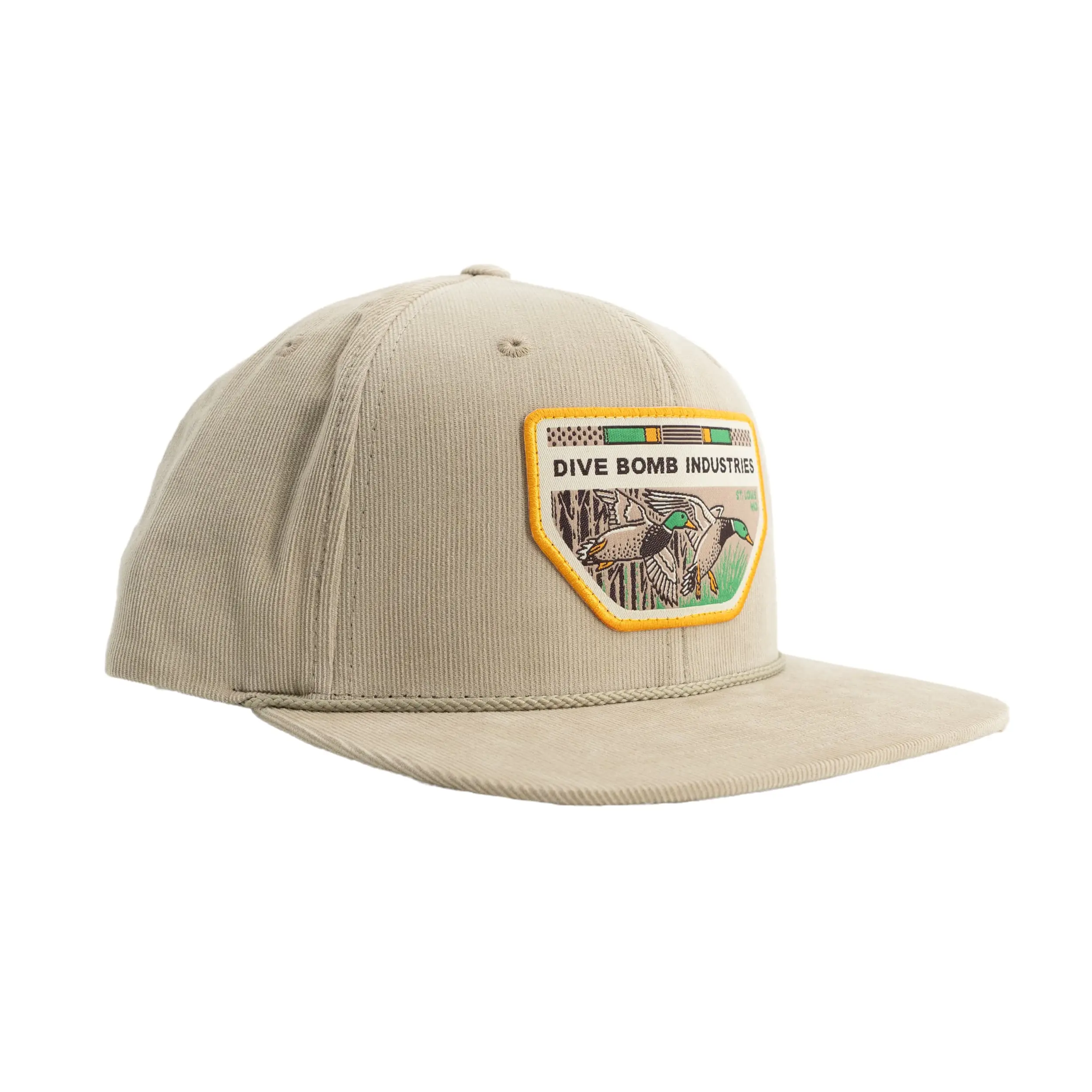 The Drake Duo Heritage Hat is the perfect blend of tradition and style, featuring a woven patch with two drake mallards, Dive Bomb Industries text, and our headquarters location in St. Louis, MO.