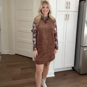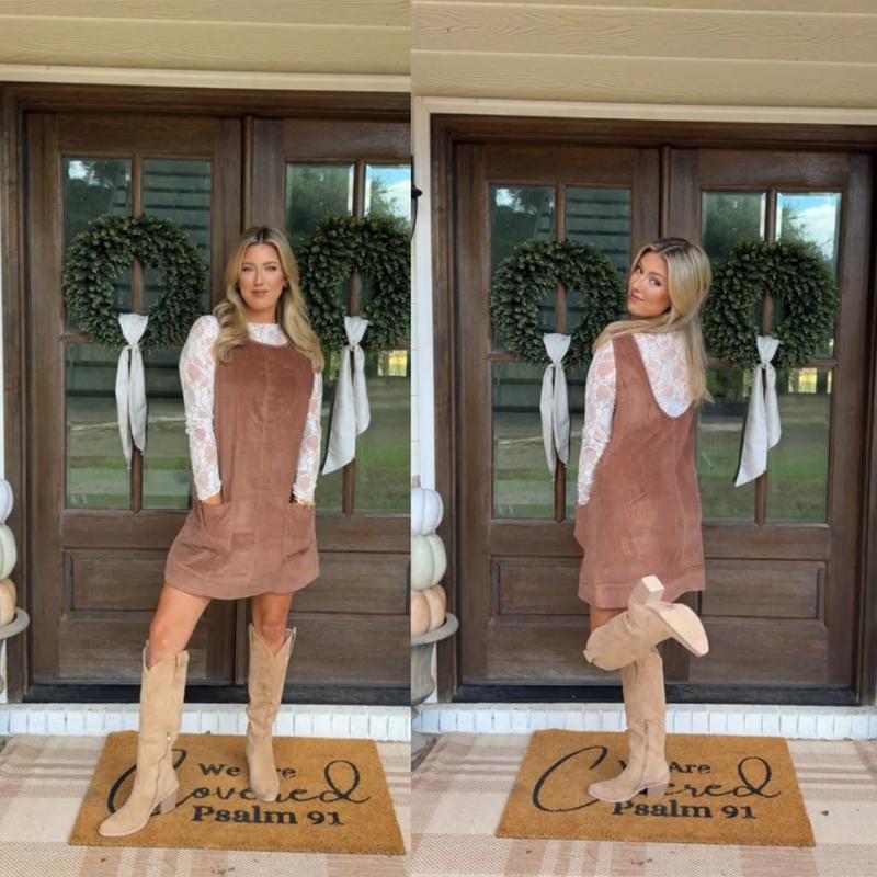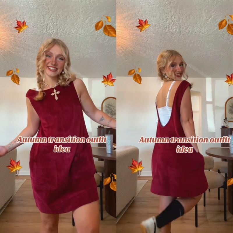 Style & Fit: This sleeveless corduroy mini dress is perfect for layering or wearing alone. Its mini length and low scoop back create a flattering, youthful silhouette that suits both casual days and dressier occasions. For an elegant touch, pair it with a delicate lace top underneath — the contrast of soft lace and textured corduroy instantly elevates the look, making it more refined and feminine.