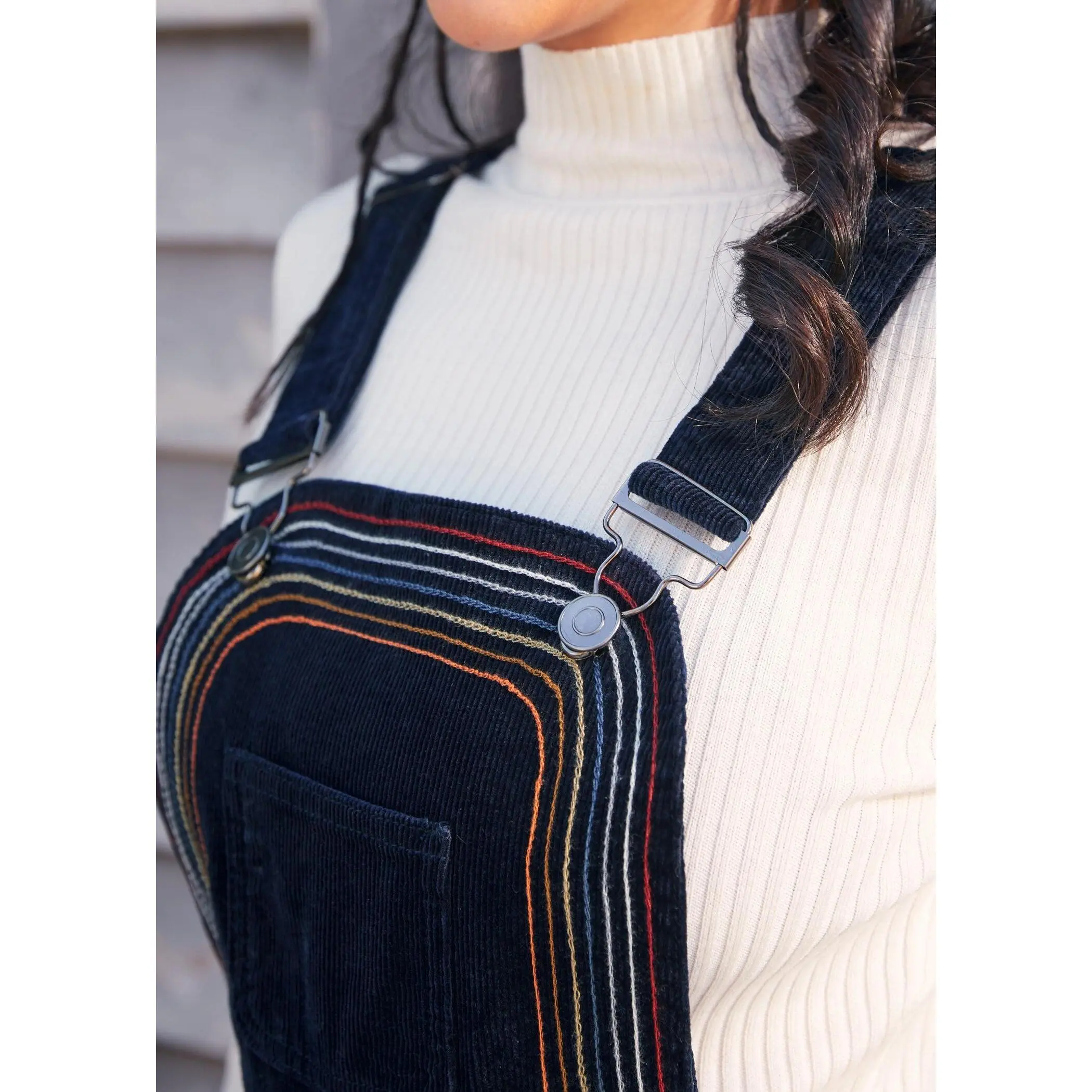 Dive into the vintage vibes with the Rainbow With Me Corduroy Overalls from our ModCloth namesake label. These twilight marina overalls boast a playful twist; rainbow stitch detailing spans from leg to chest, bringing a dash of whimsy to the sturdy, woven mechanical stretch fabric.