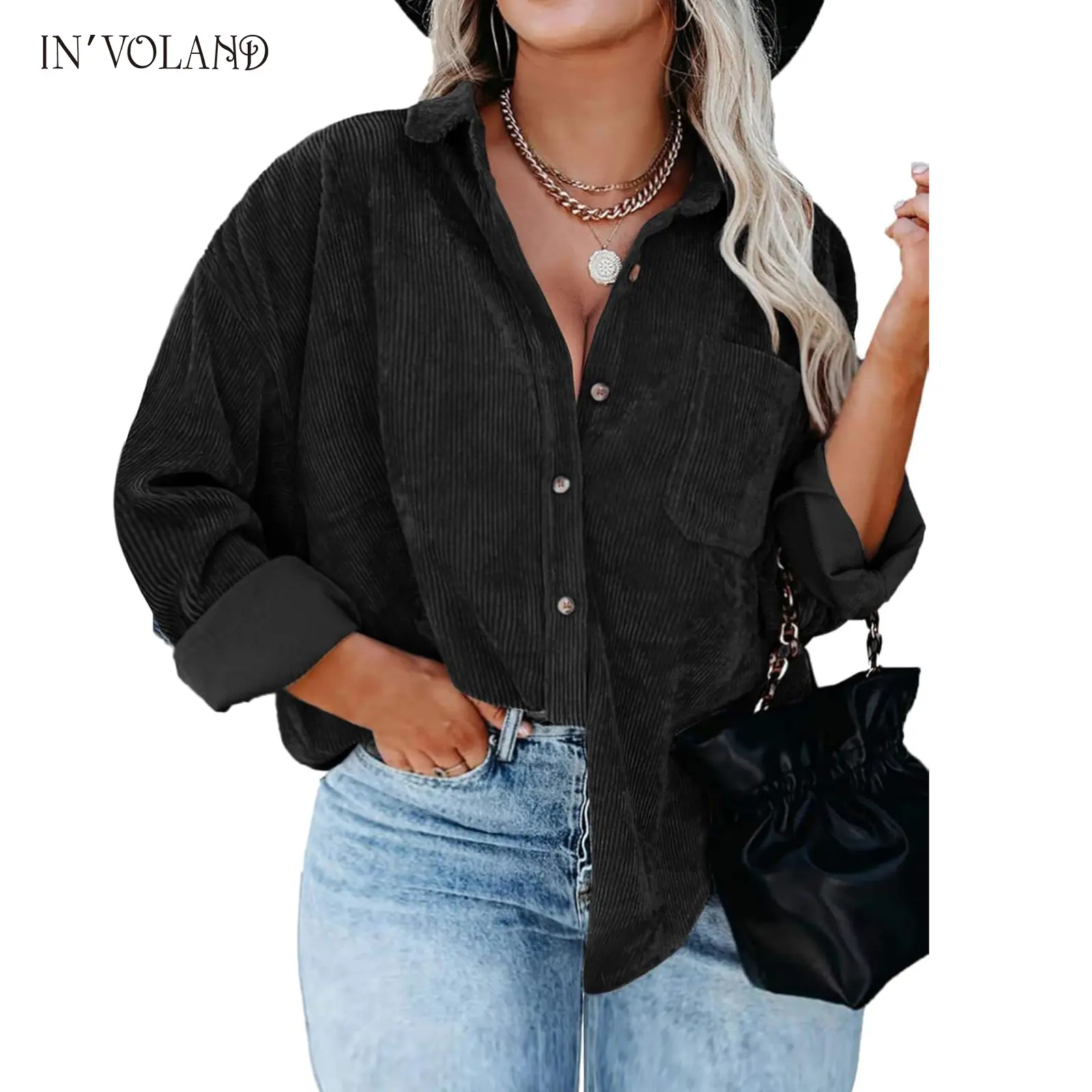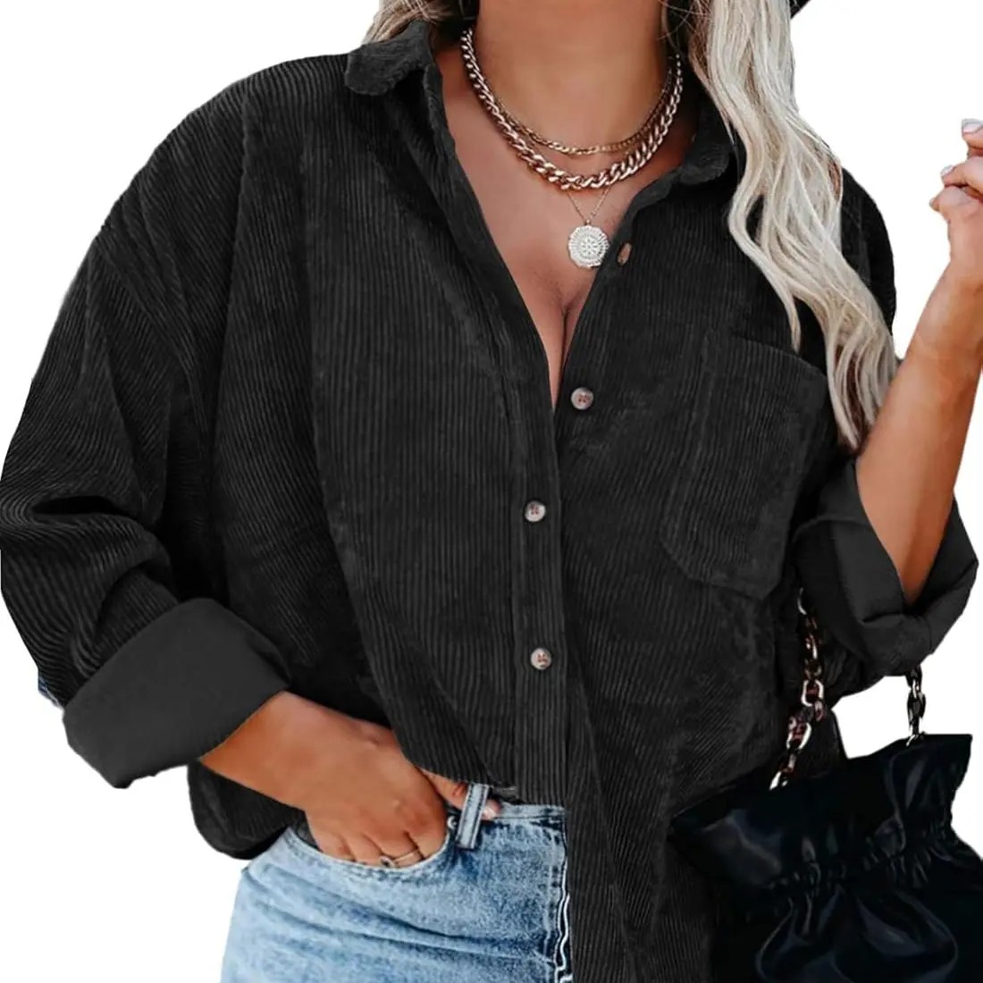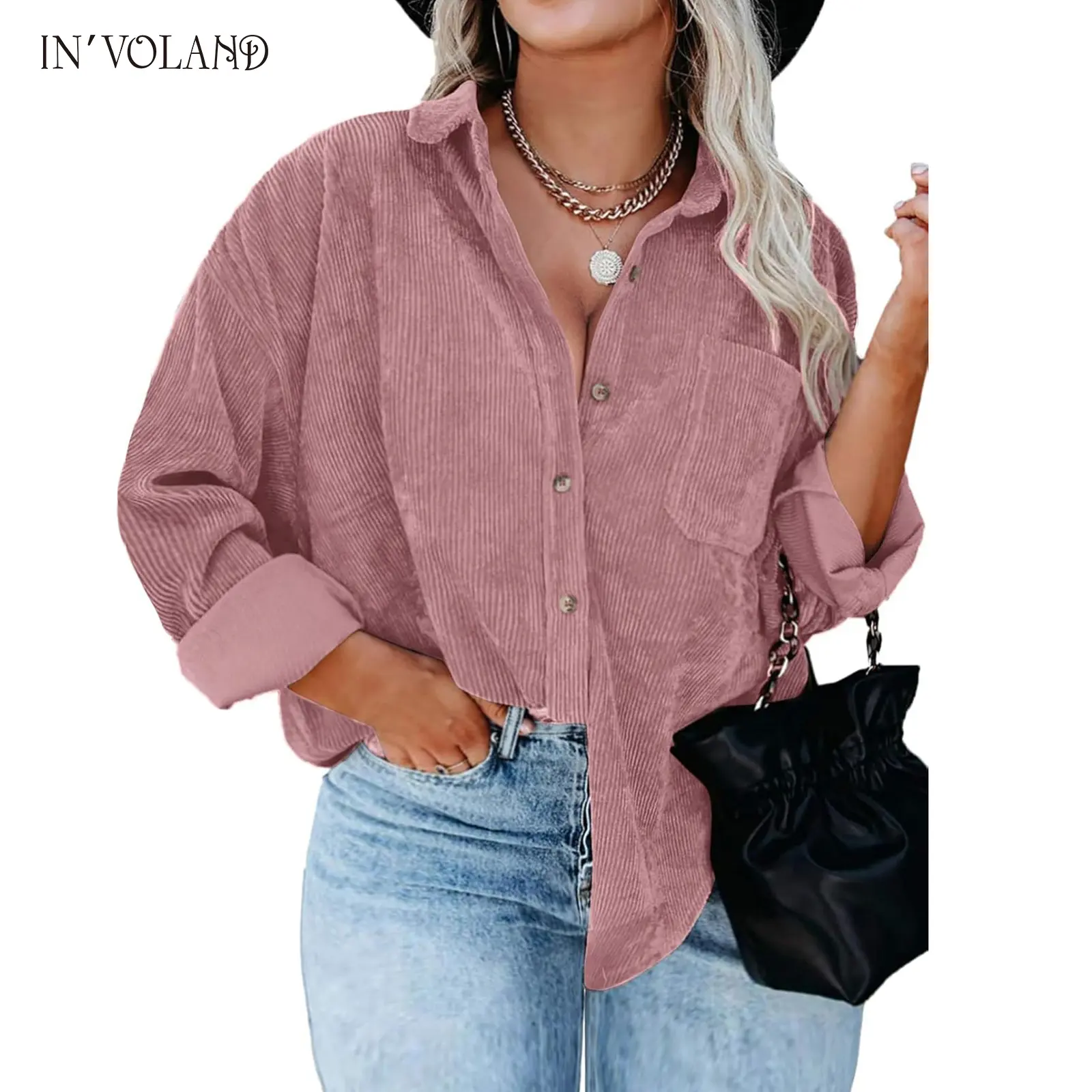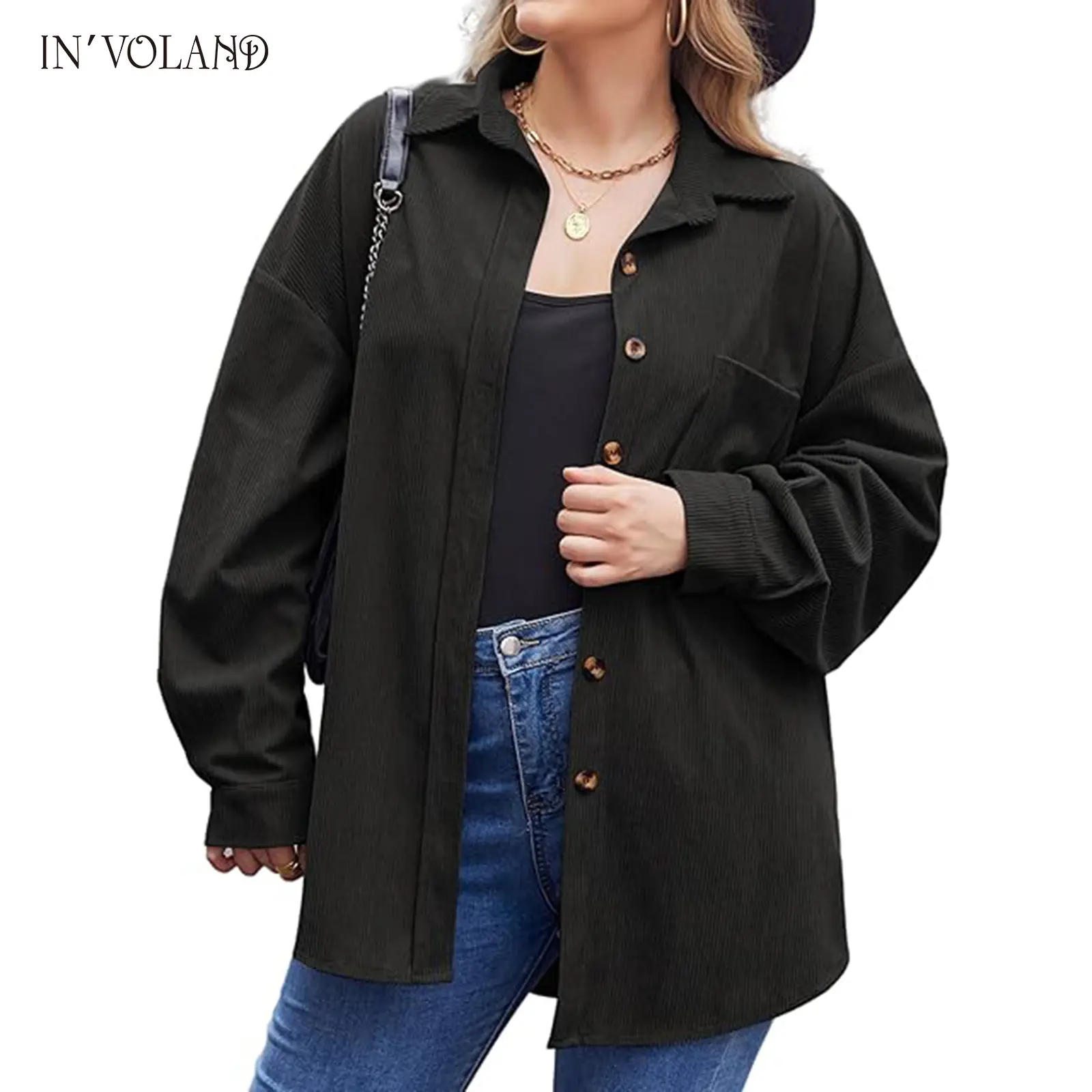 ·The stylish oversized button down shirts can be paired with jeans, tank tops, shorts, skirts, bodysuits, sneakers, or high heels; The casual plus size corduroy jacket is a must-have for ladies' fashion.