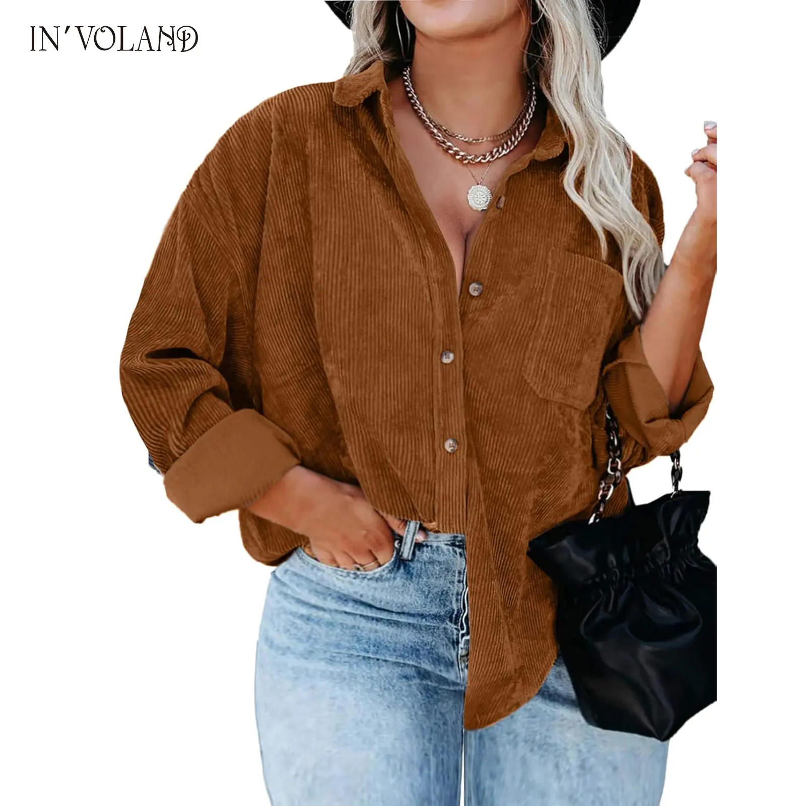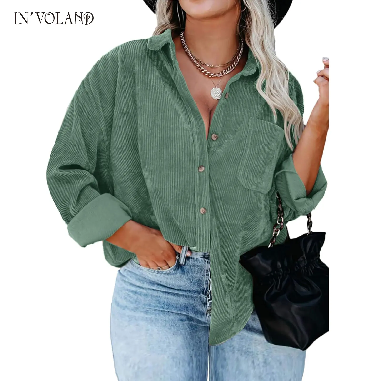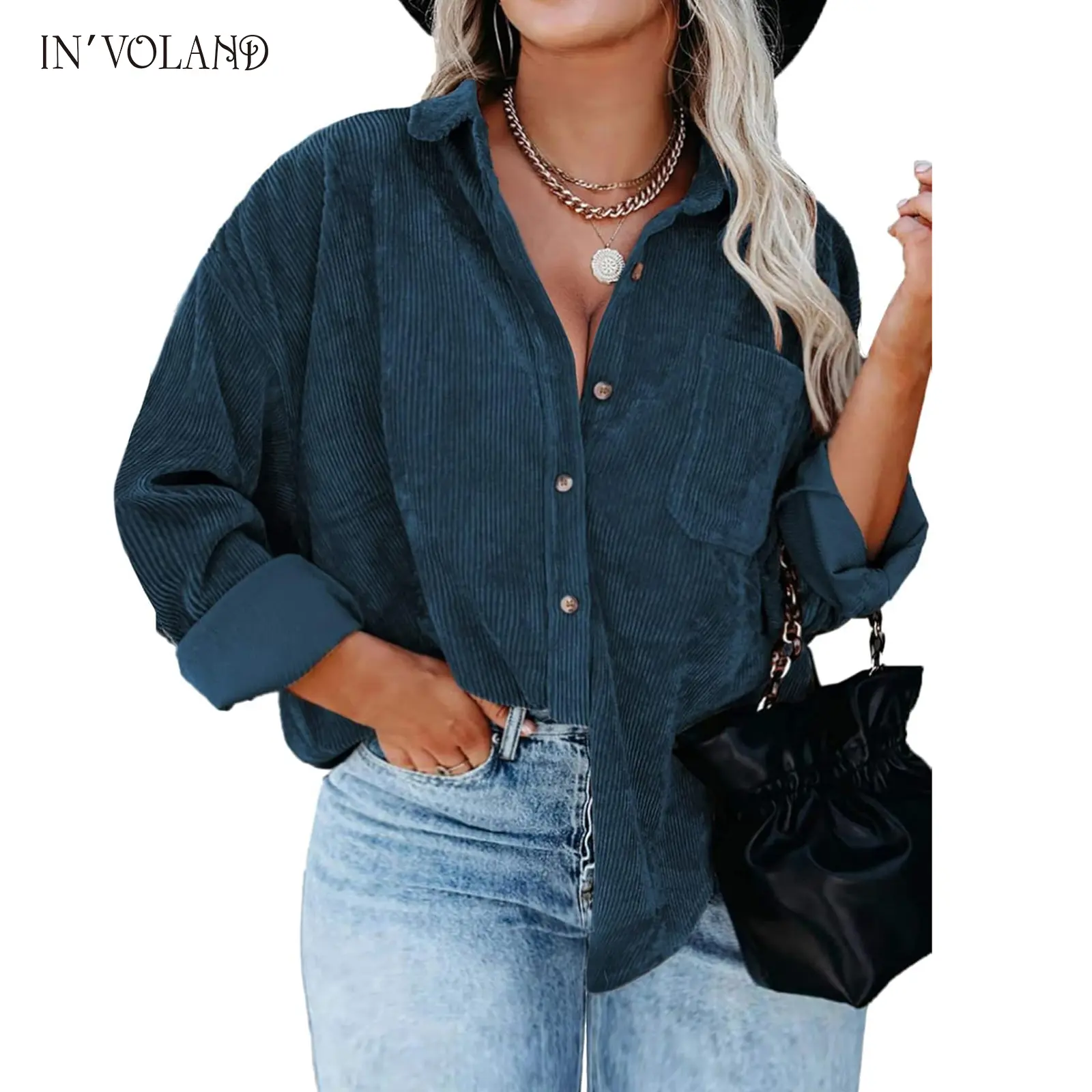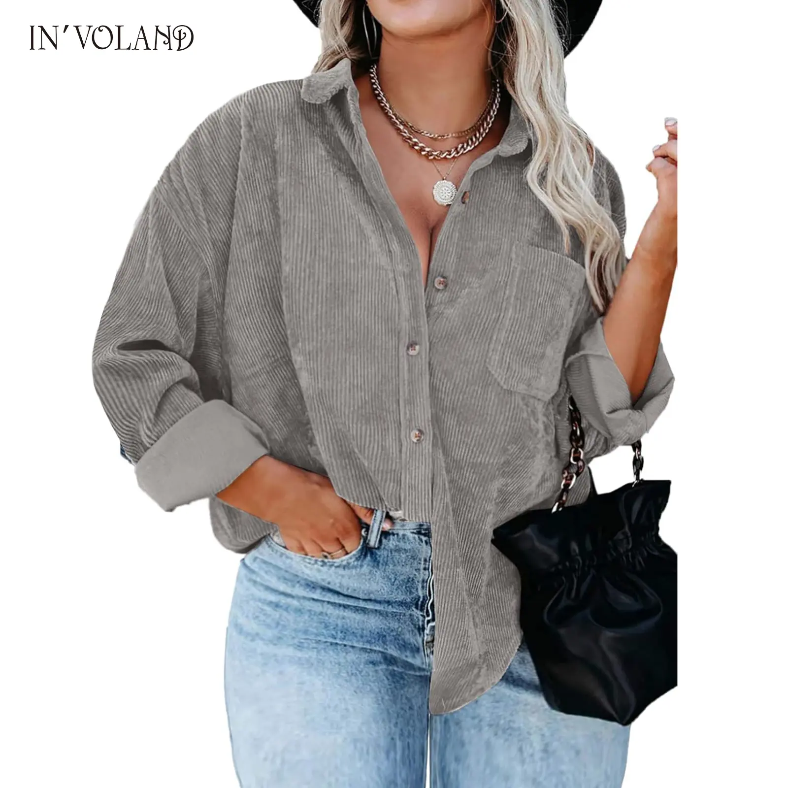 ·The stylish oversized button down shirts can be paired with jeans, tank tops, shorts, skirts, bodysuits, sneakers, or high heels; The casual plus size corduroy jacket is a must-have for ladies' fashion.