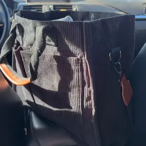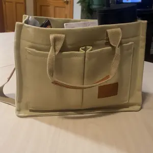 Very cutesy and spacious tote bag. Has a lot of capacity to hold your goods. Very soft material. Very good for someone who doesn’t like the purse vibe but still needs a bag.
