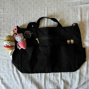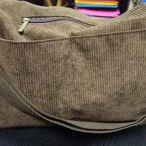 I loveâŠthe curduroy is not super thick so itâs nice. The main pocket fit a 5-sub notebook, 3-sub notebook pencil bag, I didnât show but it fits my laptop with its case perfectly(and itâs pretty thick) so itâs roomy. I really like that the side strap is super long,since Iâm tall it looks normal