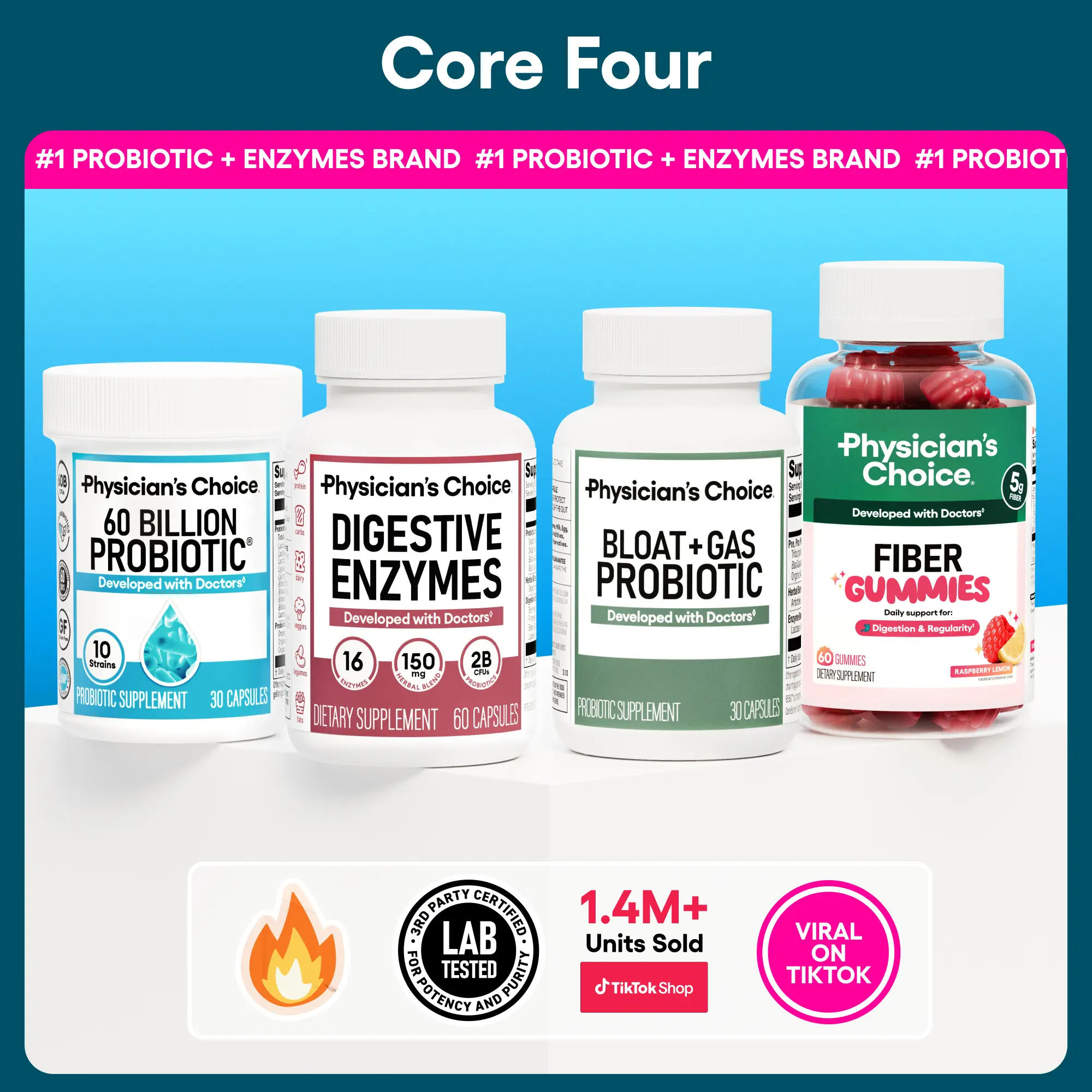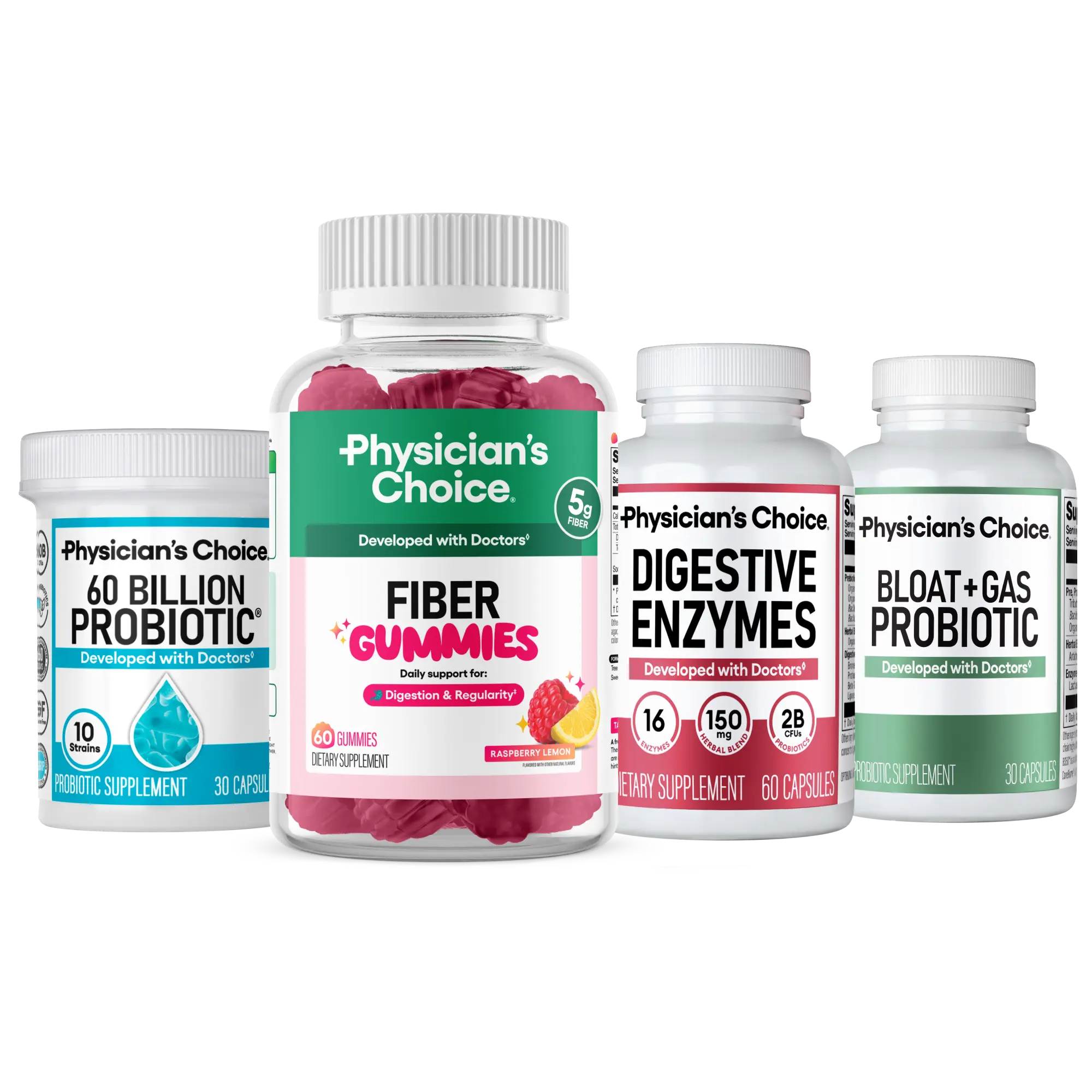 Physician's Choice Daily Bundle: Featuring 60 Billion Probiotic, Bloat & Gas Probiotic, Digestive Enzymes, and Fiber Gummies 🌿 Perfect for digestive balance, gut comfort, and daily fiber support.