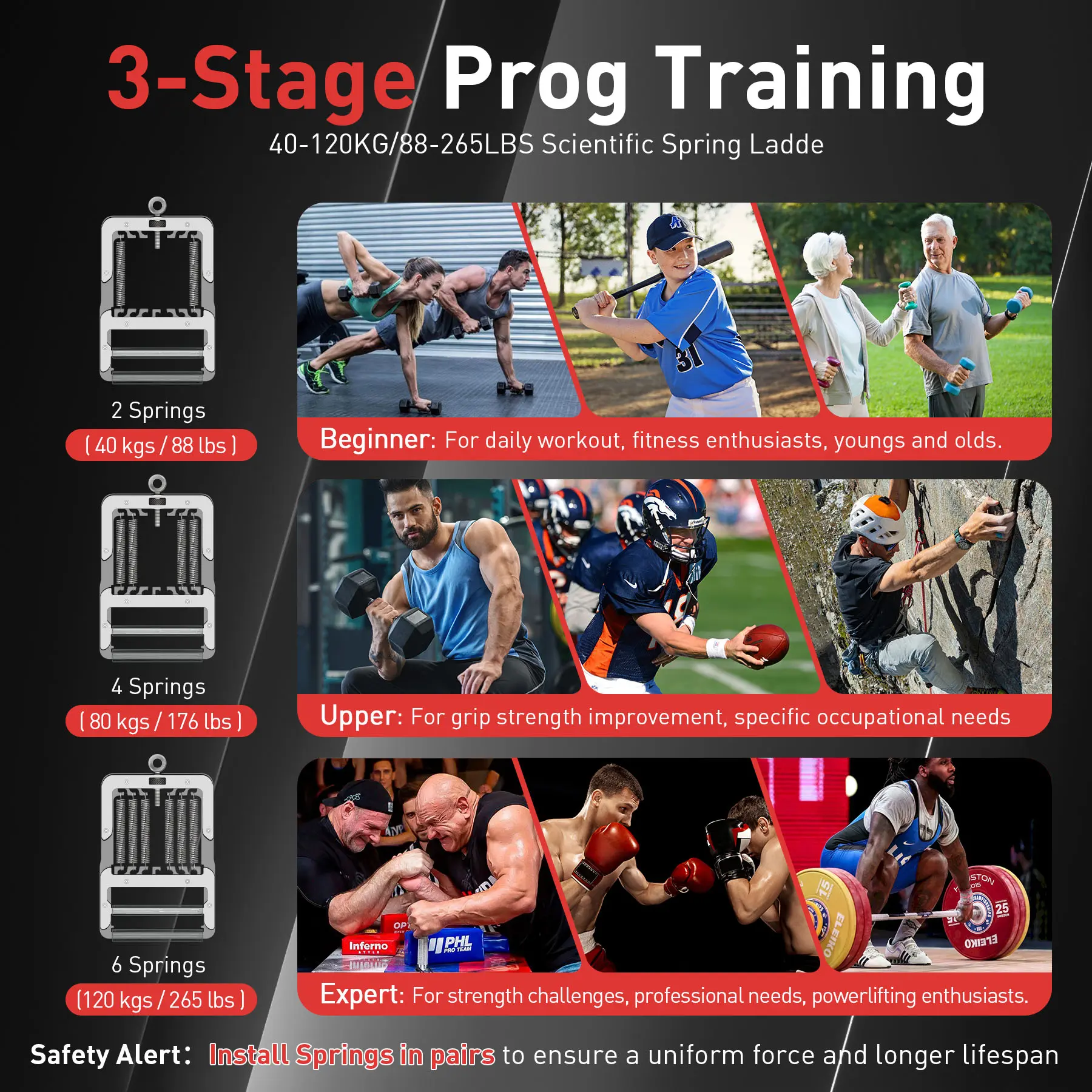 ·Adjustable Resistance – Comes with 6 interchangeable springs (20kg each), supporting up to 150kg / 330 lbs max load.