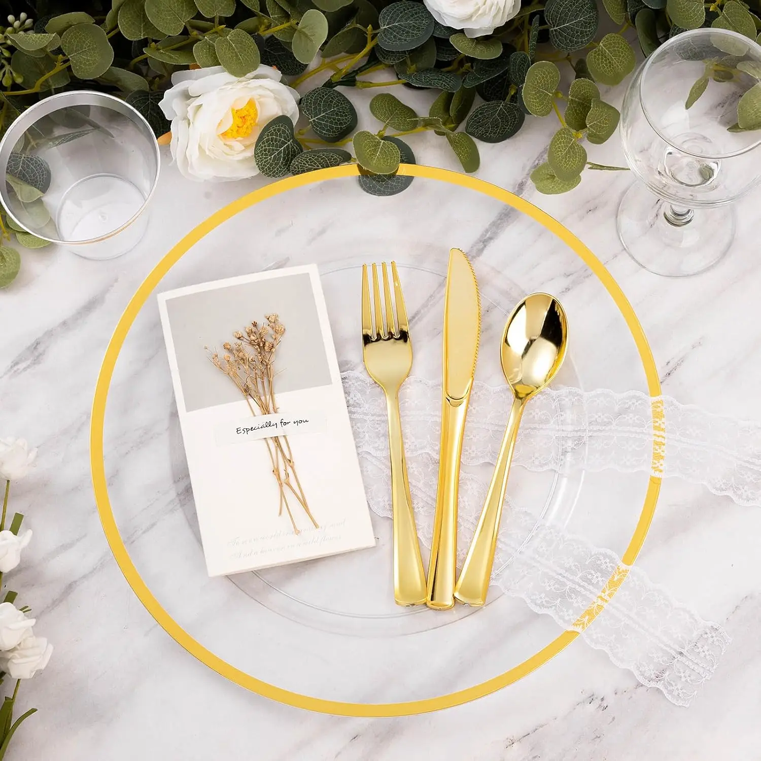 When the event is over, simply wash and reuse - no waste, no hassle. Perfect for hosts, couples, or anyone who wants a beautiful table without the extra work.