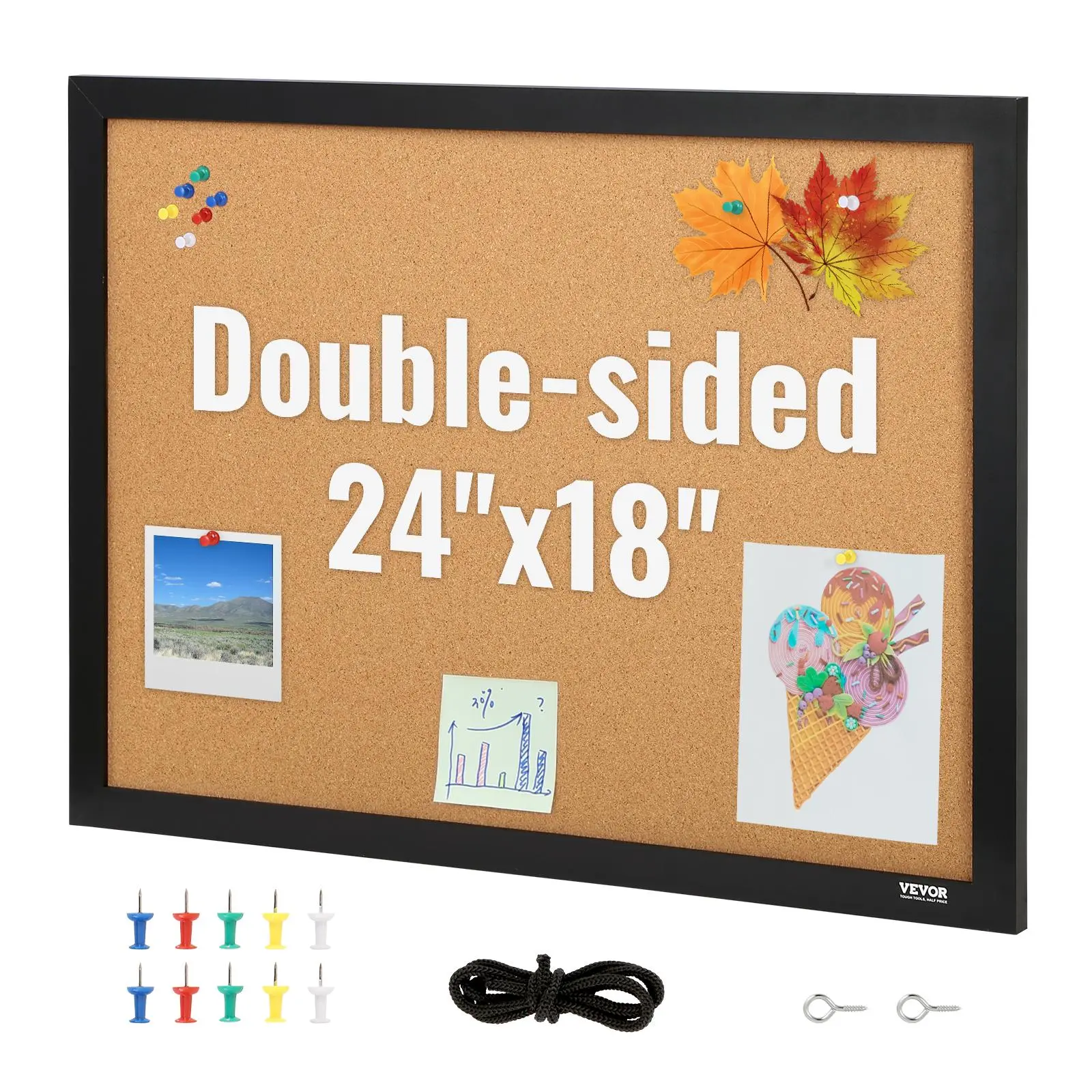VEVOR Cork Board, 24 x 18 inches, Double-sided Bulletin Board with MDF Sticker Frame, Vision Board Includes 10 Pushpins, for Display and Decoration in Office Home and School