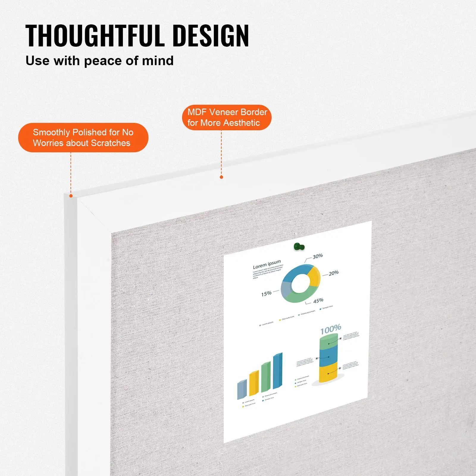 5. VEVOR 36"x24" White Cork Board with Linen Surface – Stylish Wall-Mounted Bulletin Board for Home, School, Office – Elegant & Functional Noticeboard