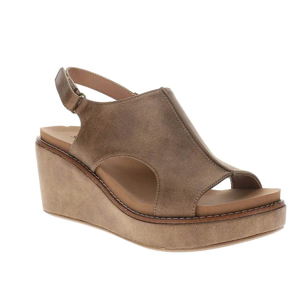 Step into a world of glamour and luxurious comfort with the Carley Wedge Sandals. The trendy faux leather upper with a hook and loop closure ensures a secure fit. The 3 inch wedge heel offers a flattering height, with a lightly cushioned footbed providing much needed comfort and support to fully assist during those long days full of activities. Perfect for special occasions or adding a touch of sophistication to any outfit, these sandals combine fashion and function effortlessly.