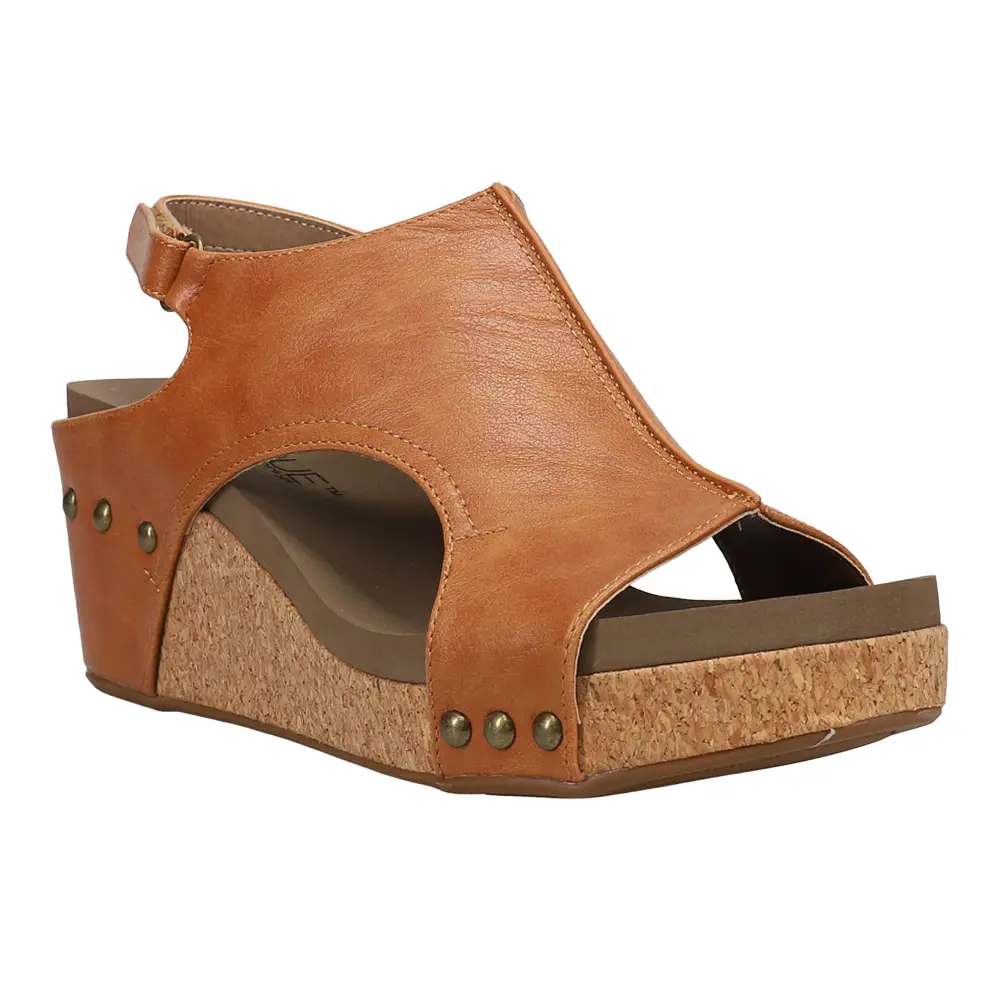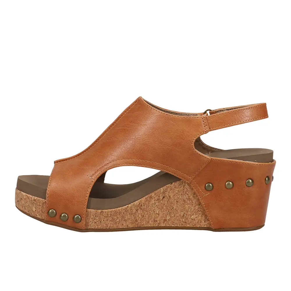 Step into a world of glamour and luxurious comfort with the Carley Wedge Sandals. The trendy faux leather upper with a hook and loop closure ensures a secure fit. The 3 inch wedge heel offers a flattering height, with a lightly cushioned footbed providing much needed comfort and support to fully assist during those long days full of activities. Perfect for special occasions or adding a touch of sophistication to any outfit, these sandals combine fashion and function effortlessly.