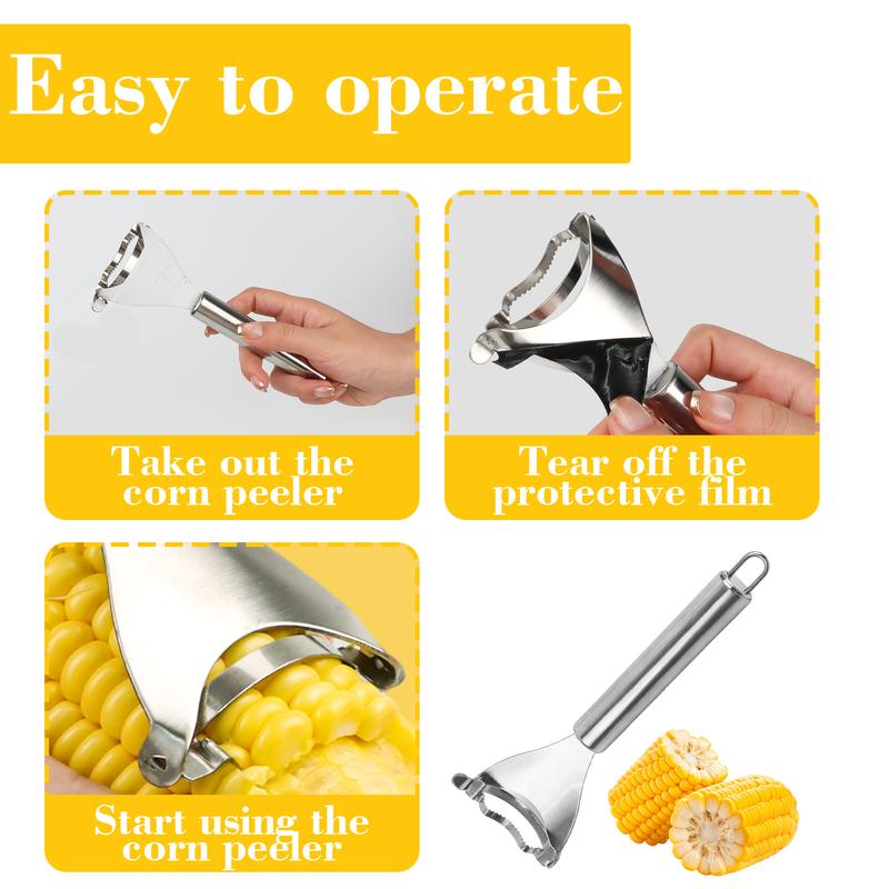 High-quality Material - The corn peeler is made of safe and durable 304 stainless steel material, ensuring it is not prone to corrosion and rust, bends, cracks or weaken in joints, and can be used for a long time Versatile Occasion - The effective corn stripper can be used on home, restaurants and more occasions, which allow you quickly get fresh sweet corn, making it a must-have kitchen assistant for mom, chef or cooking enthusiast Easy to Store - The corn peeler comes with a hole in the handle for easily hanging and storage, saving more space in your kitchen and avoid confusion