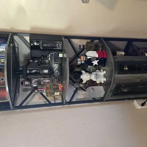 ·Features: RGB LED Lights (APP/Remote Control), Power Strip (3 Outlets, 2 USB Ports), Wine Rack (Removable), Glass Rack, Adjustable Shelves