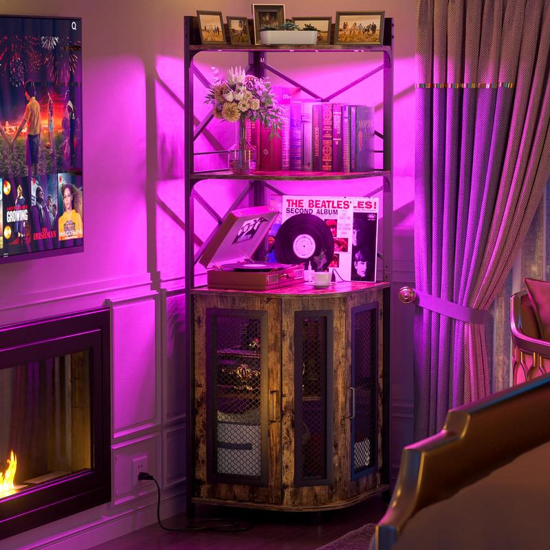 Upgrade your entertainment space with this all-in-one Corner Bar Cabinet. Designed specifically to make the most of corner areas, it offers a sophisticated solution for storing and displaying your wine, spirits, and glassware. Enjoy customizable mood lighting with the vibrant RGB LEDs and the ultimate convenience of a built-in charging station. Built for durability and designed for straightforward assembly, it's the perfect addition to any modern home bar.