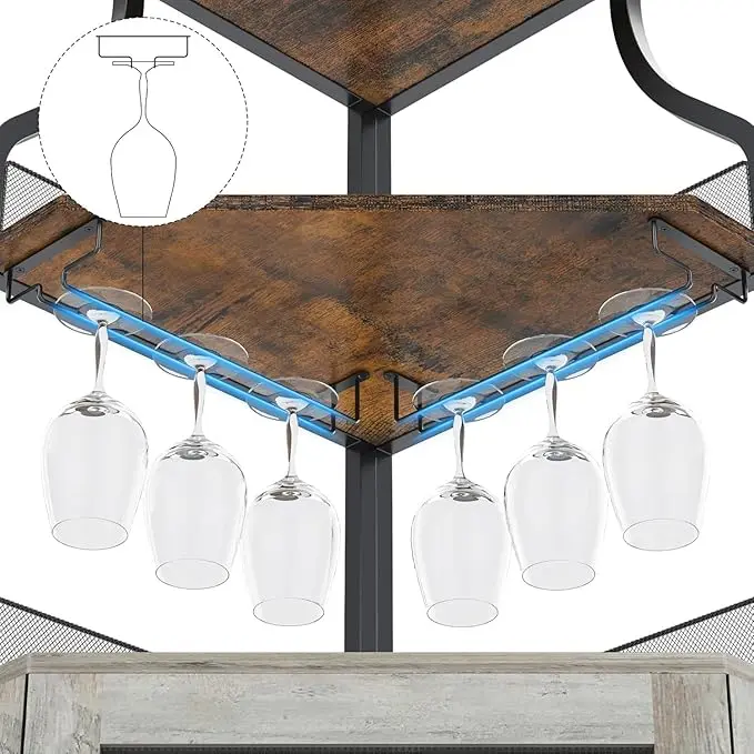 ·Corner Wine Cabinet with LED Lights: Enhance your living space with our corner wine cabinet, equipped with dynamic RGB LED lights offering seven vibrant colors, customizable flashing effects, and adjustable brightness levels. The included remote control lets you easily set the ideal lighting to create the perfect ambiance for social gatherings or relaxing evenings.