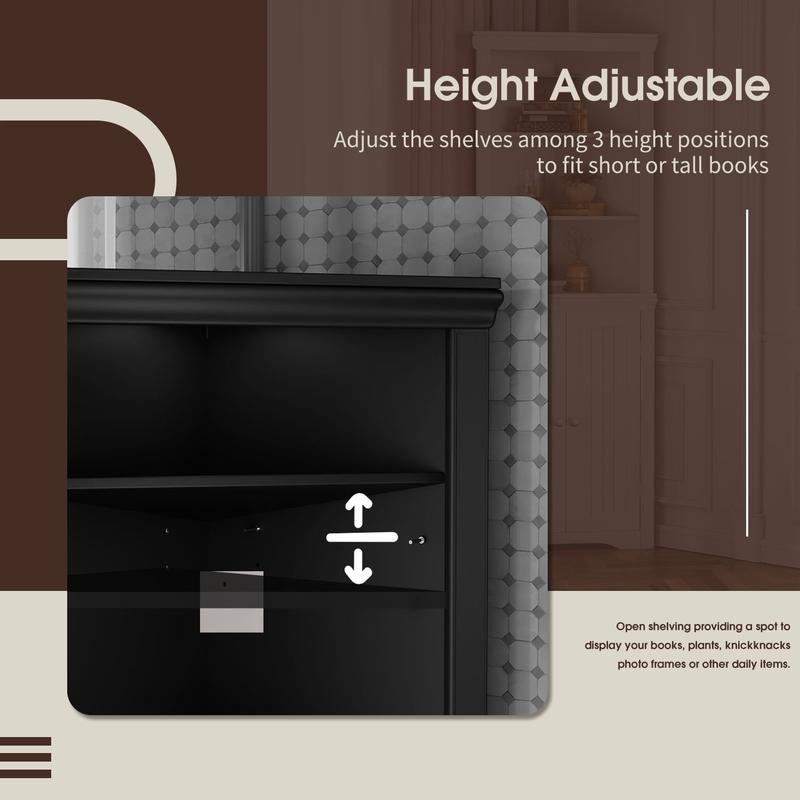 FURMAX corner shelf bookshelf with door multilayer design has a large capacity to meet the daily needs of placing the items. Ideal for placing and organizing your books, plants, collections, and anything worth displaying your passion. The bottom storage space is to enhance the stability and enlarge your storage space. This corner bookcase fits perfectly in your living room, bedroom, study, or office.