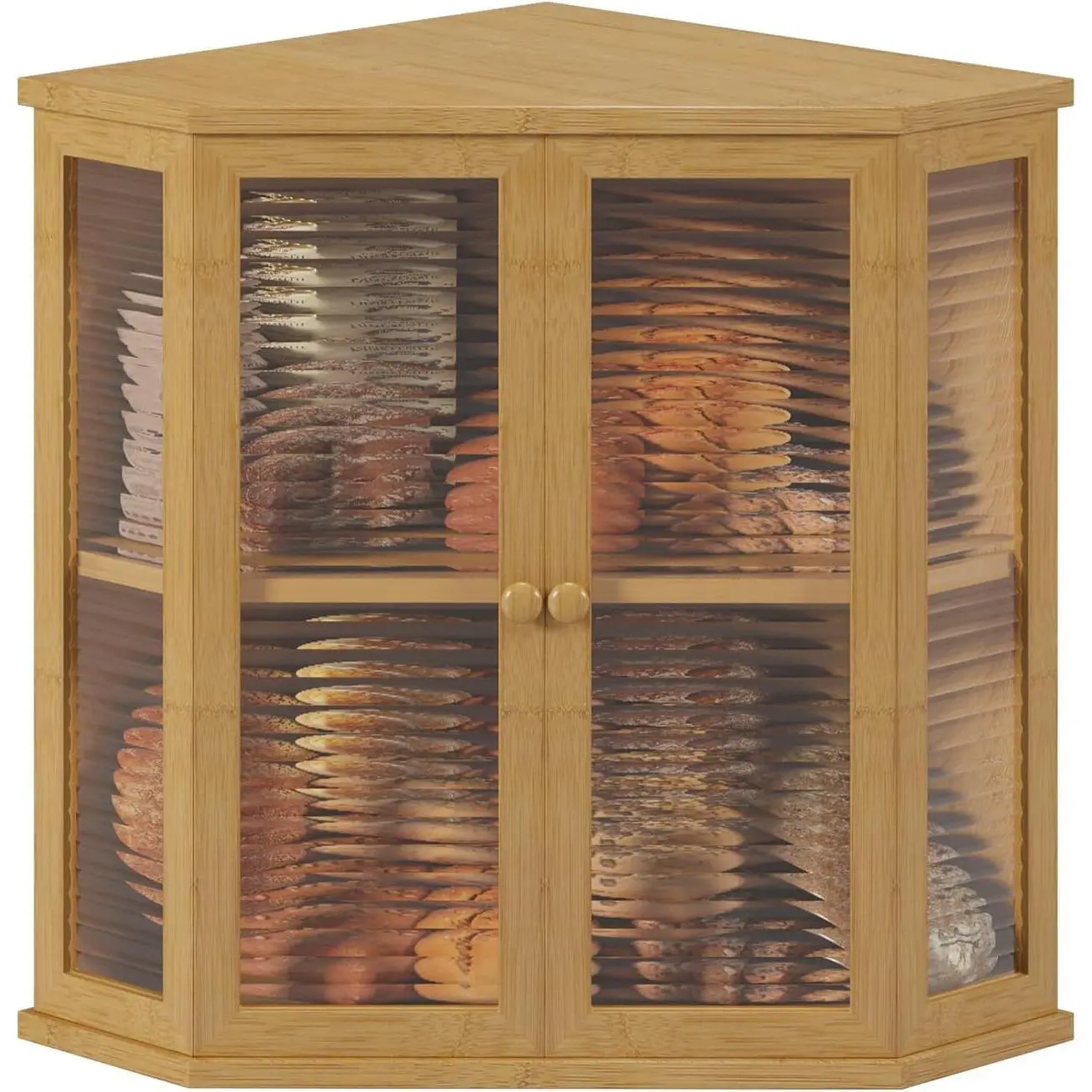 Space-Saving Corner Shape:Innovatively shaped to fit kitchen corners, this bread box maximizes countertop space without compromising storage size or style