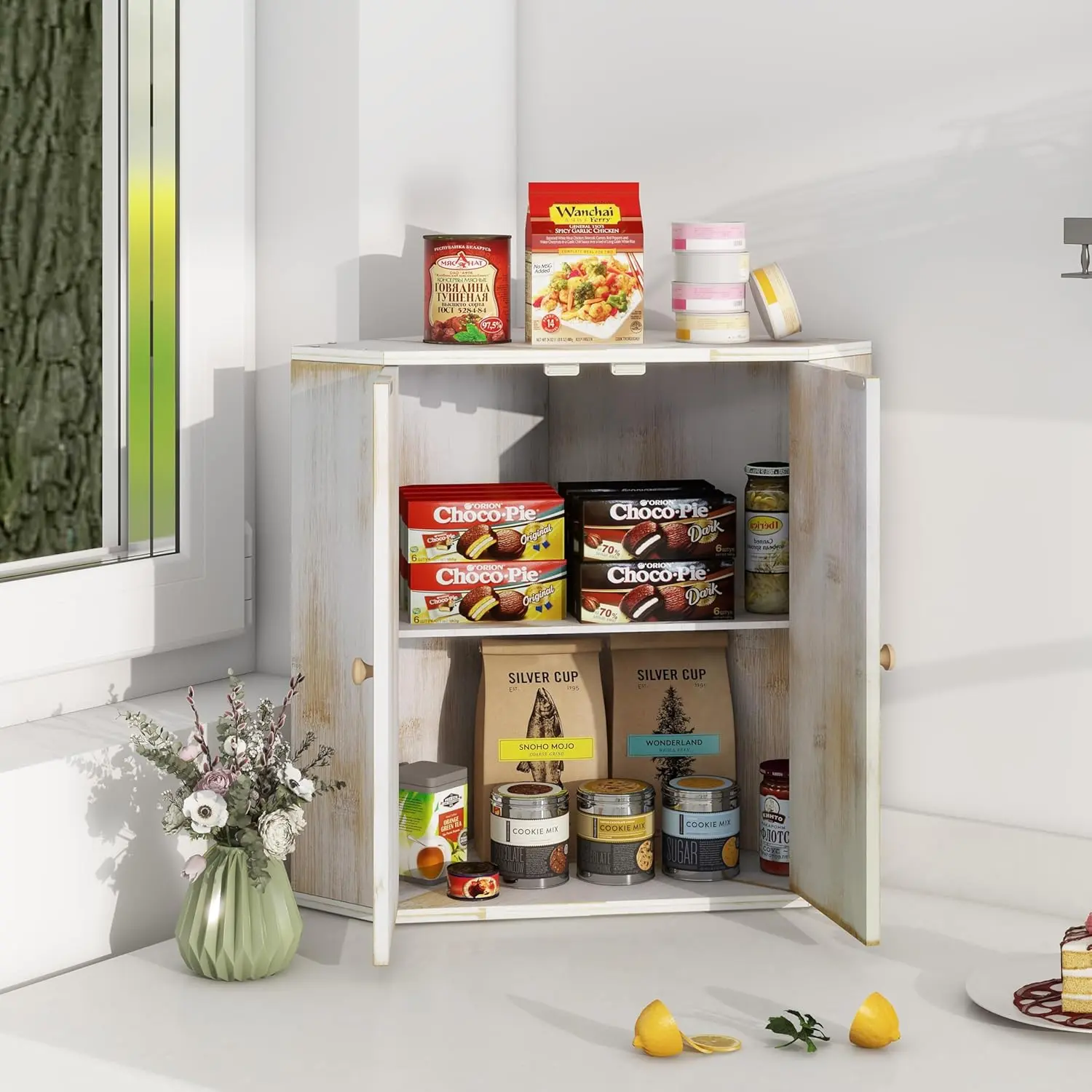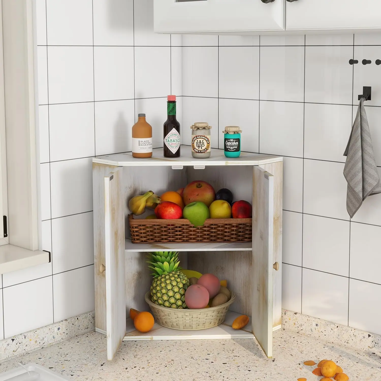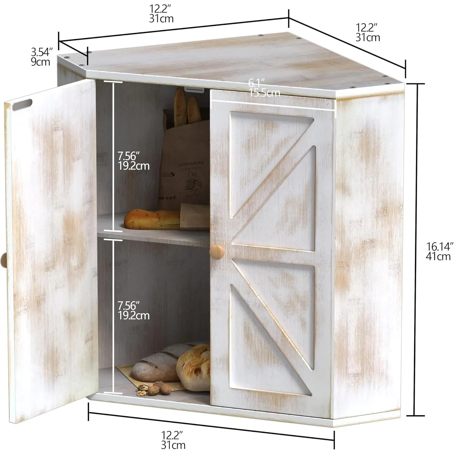 Large Capacity:Our corner bread box with 2 layers are large to hold 2 large loaves of bread, rolls, muffins, and more. Flat top design,any kitchen items you want can be placed on the bread box. It can save your space and meet the needs of your family