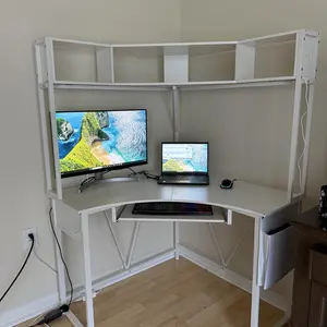 I love this desk I got it tonight & put it together, it literally saved me so much room im throwing my other desk out the window.. it’s hard working from home with a big desk in your living room or kitchen this one fits perfect in the corner & takes up no room but holds 2 full monitors!!!
