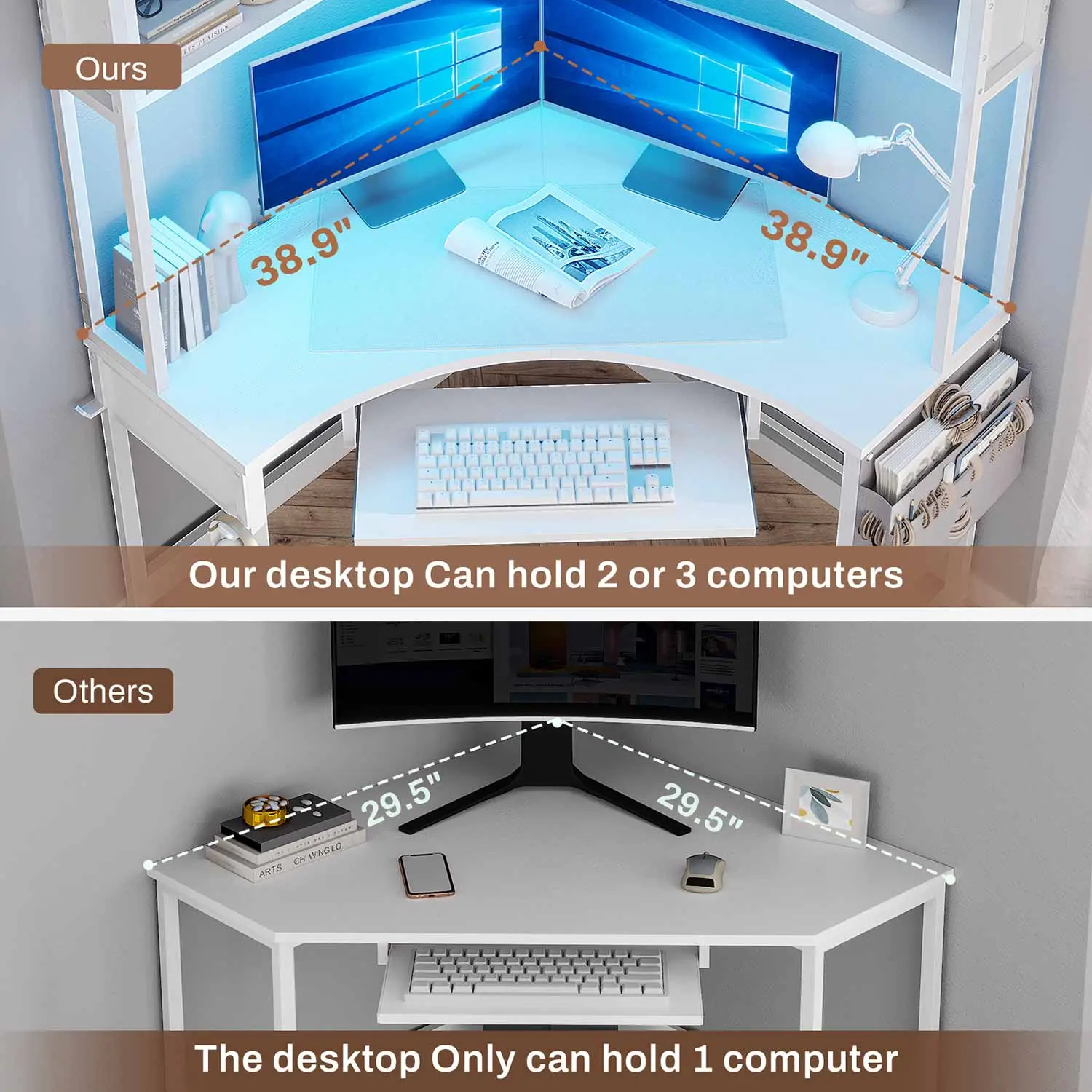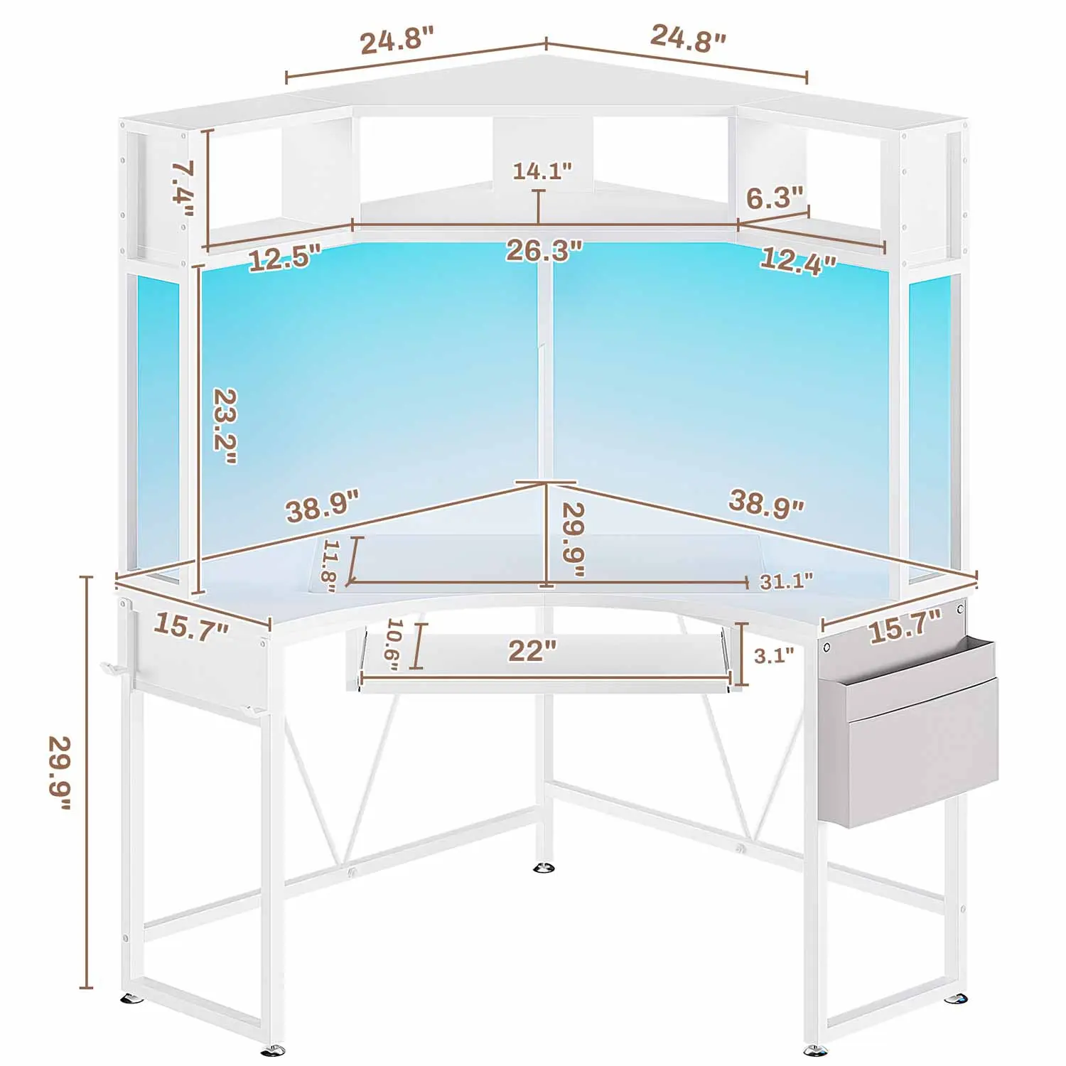 5. SEDETA Corner Desk with Tray and LED Lights Small Computer Desk Gamer Desktop Desktop Workstation Furniture