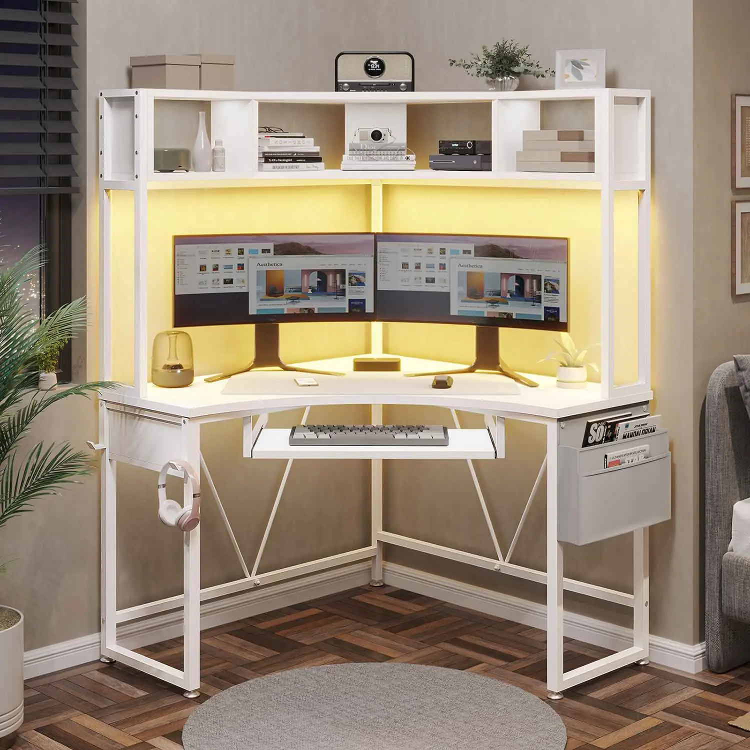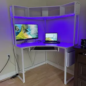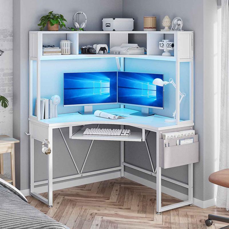 SEDETA Corner Desk with Tray and LED Lights Small Computer Desk Gamer Desktop Desktop Workstation Furniture
