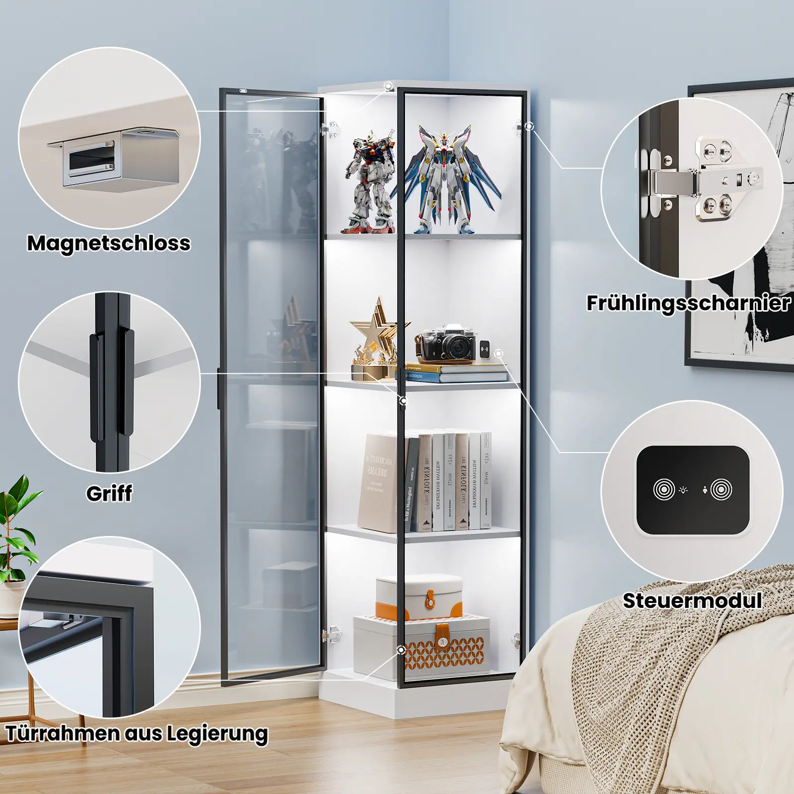 ·【Stylish Corner Cabinet】- This corner display cabinet is made with MDF wood and acrylic materials, perfect for displaying your collection or décor. Its elegant design is perfect for any living room, bedroom, or office, making it a versatile display case for any corner in your home.