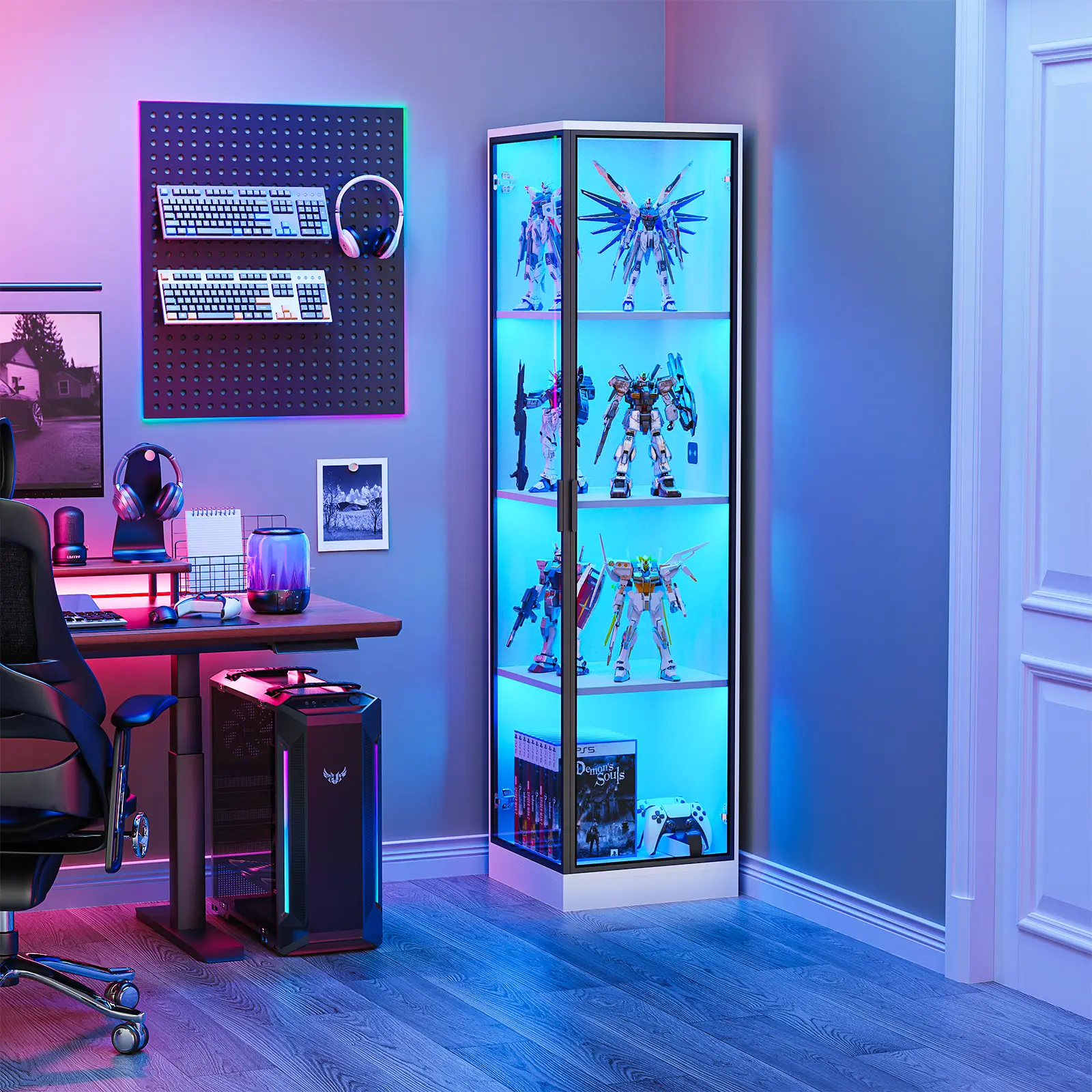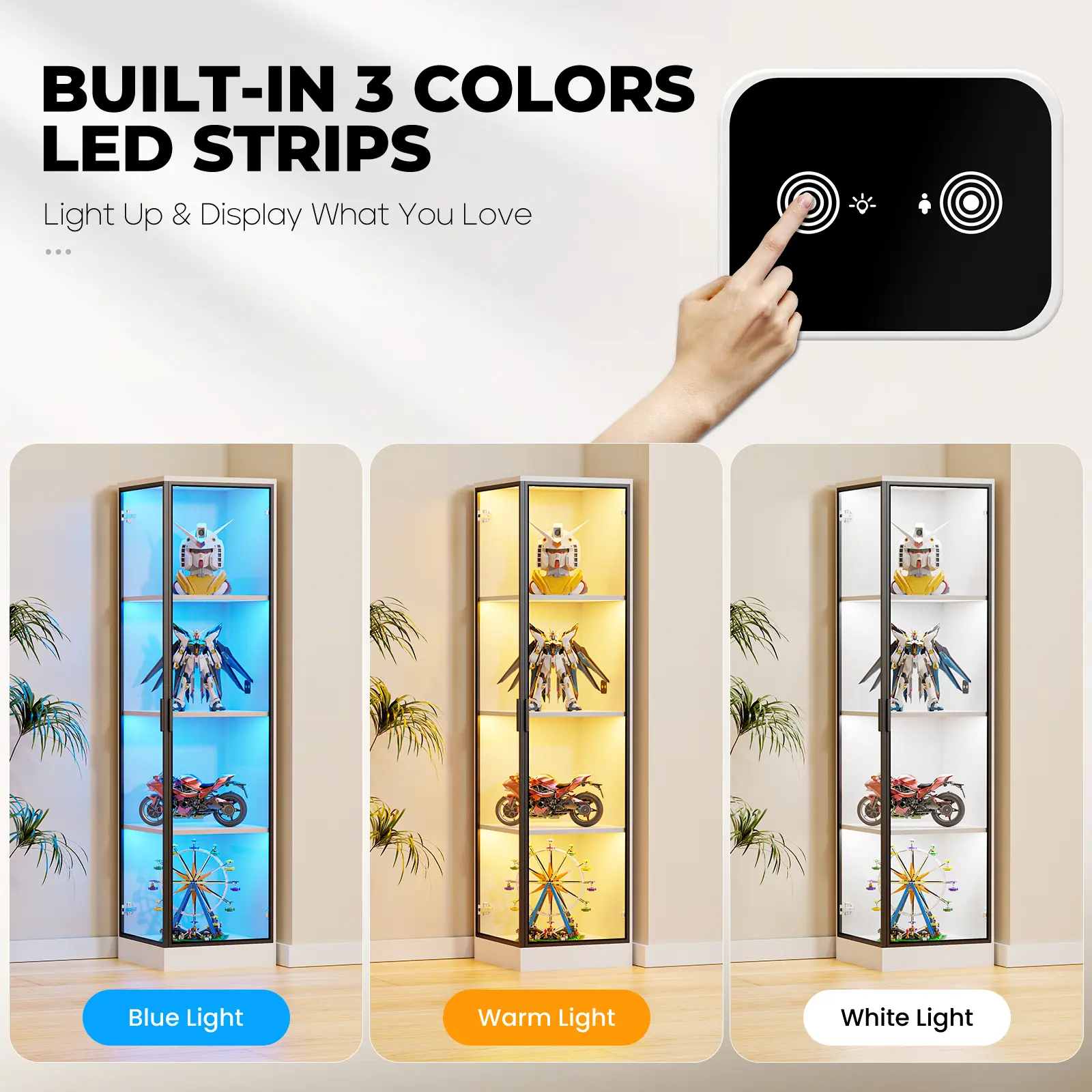 ·【Customizable Lighting】- This corner display cabinet comes with 3-color LED lighting that you can customize to fit any occasion. From warm amber tones to brilliant white light to personalized blue light, this display case is perfect for creating the right mood for your parties, gatherings, or home décor.