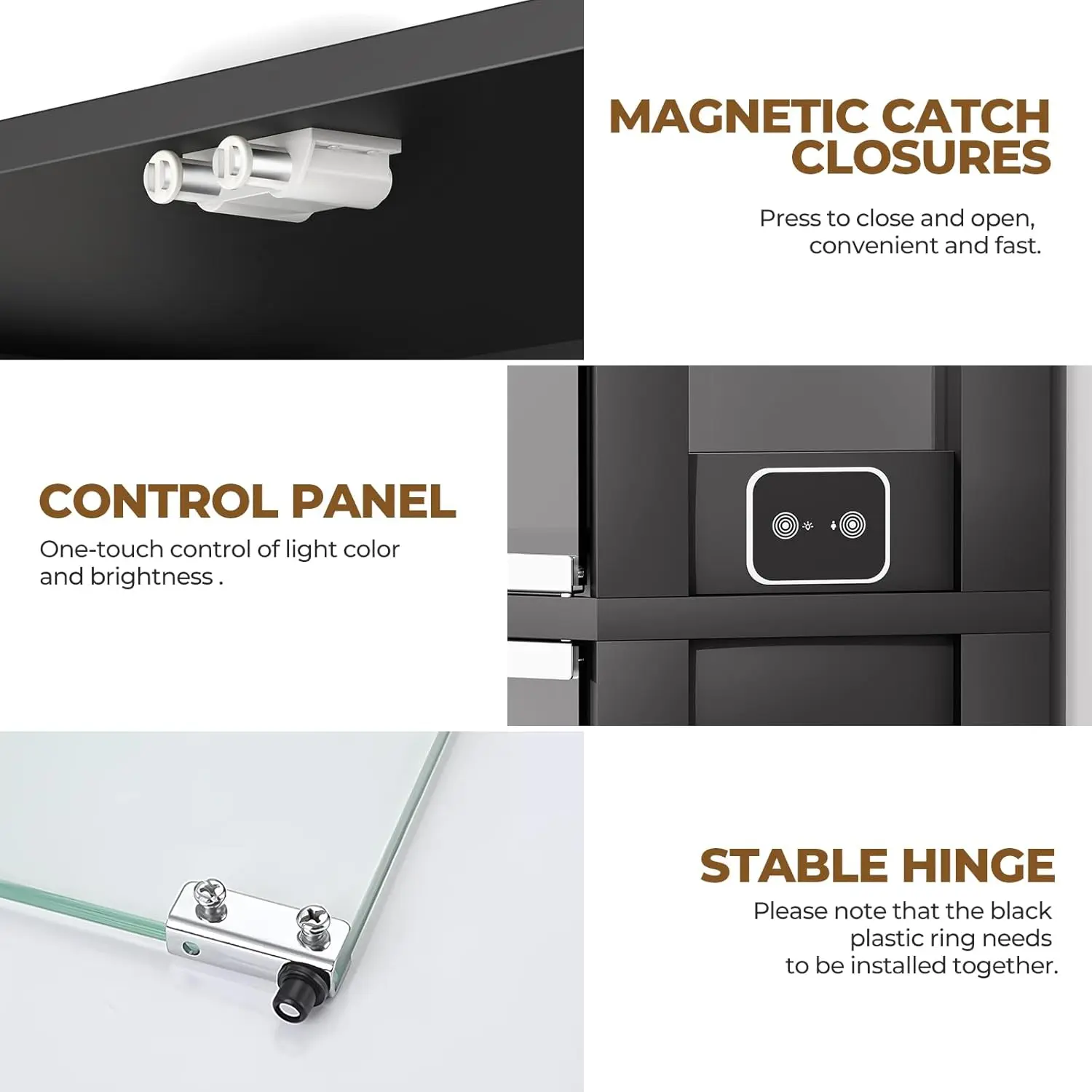 ·【3 Color LED Lights】This showcase display cabinet features 3 color LED lights of white light, warm light, blue light, and brightness adjustable. Add a modern touch to your living space and allow for clear display of your collection even in the dark.