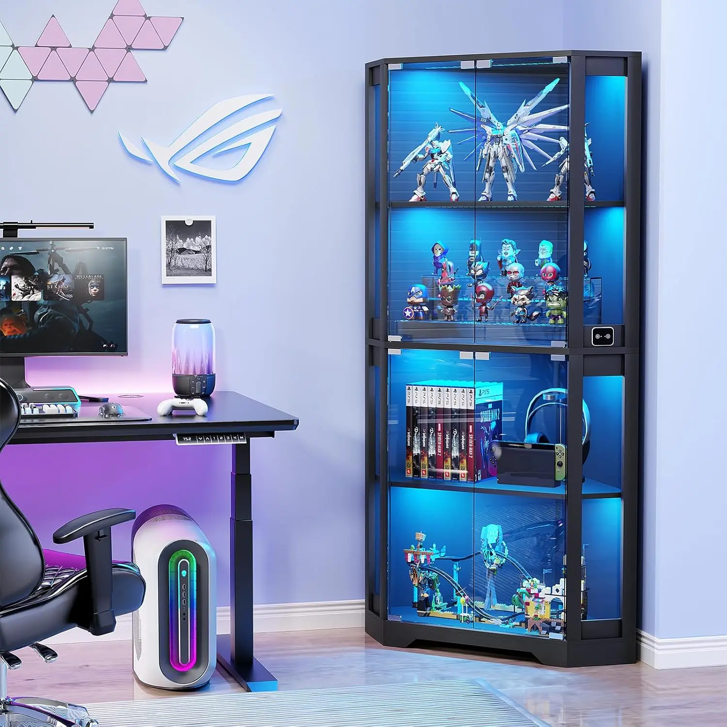 ·【Pop-Up Glass Doors】This corner curio cabinet with magnetic glass doors and space-saving design, suitable for any corner, maximizes space utilization, leaving plenty of room for other furniture. Perfect for Home office, living room, bedroom.