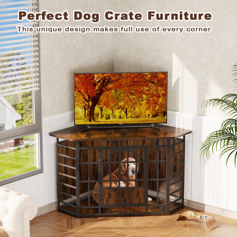 Stylish Dog Crate Furniture – With a modern wood-textured top and black metal frame, this crate looks like a premium piece of furniture. Decorate the top with plants, photos, or candles to elevate your space.