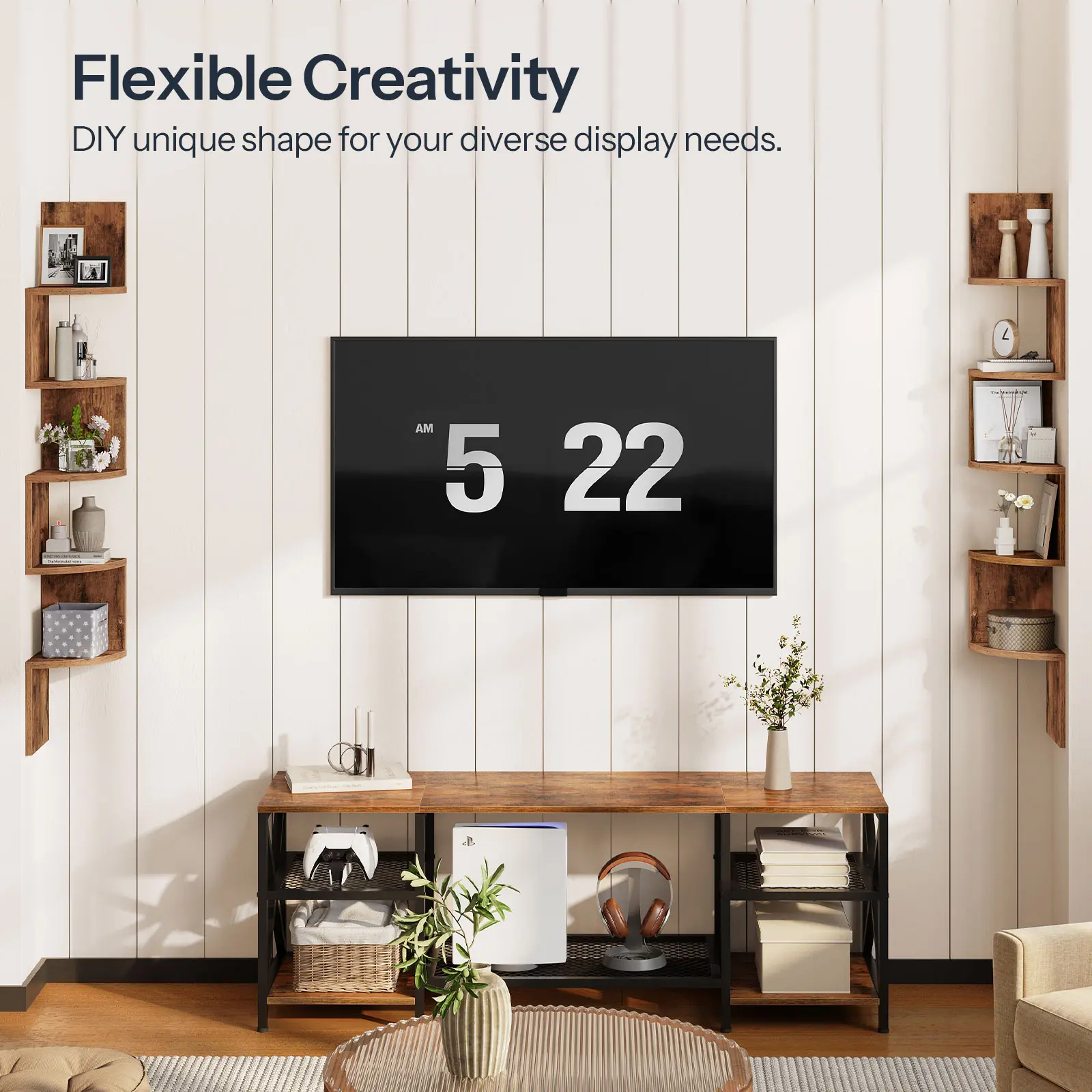 This 2-piece corner shelf set for the wall offers flexibility to suit your needs.