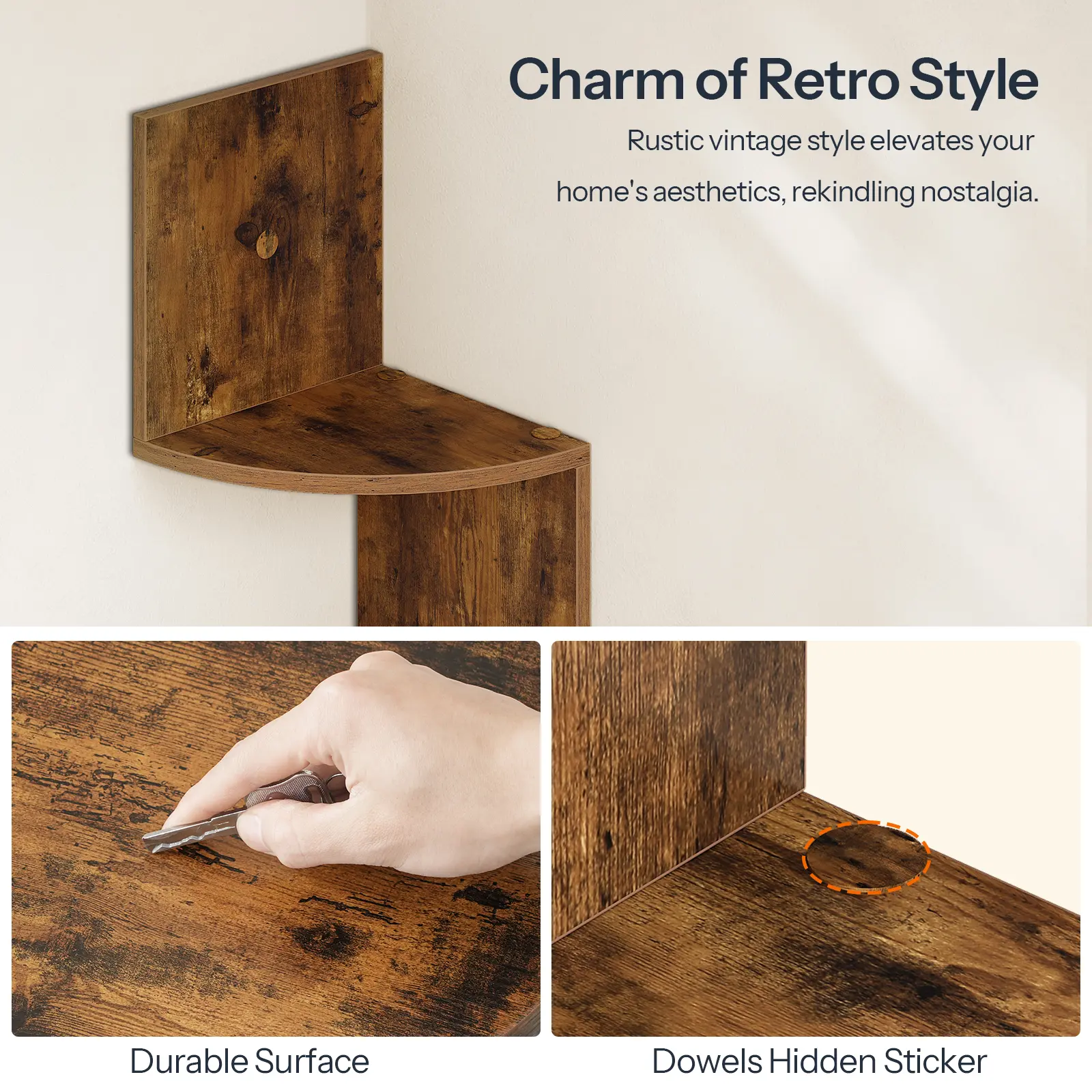 A light swipe with a slightly damp cloth removes dust and stains, keeping your corner shelf wall-mounted set looking new.
