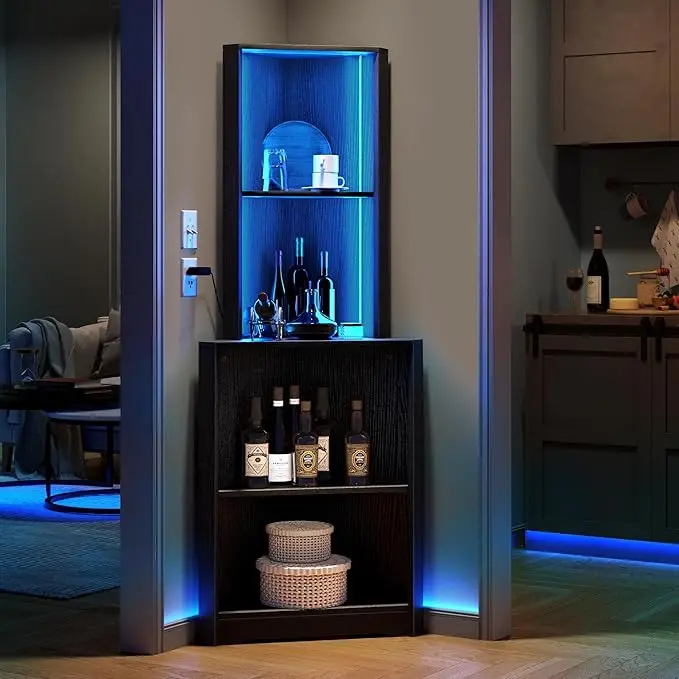 Corner Shelf with LED Light: Easily controlled through a phone app or remote, the beautiful multi-color RGB LED light strip creates a vibrant atmosphere. The light colors change and flash in sync with the rhythm of your music