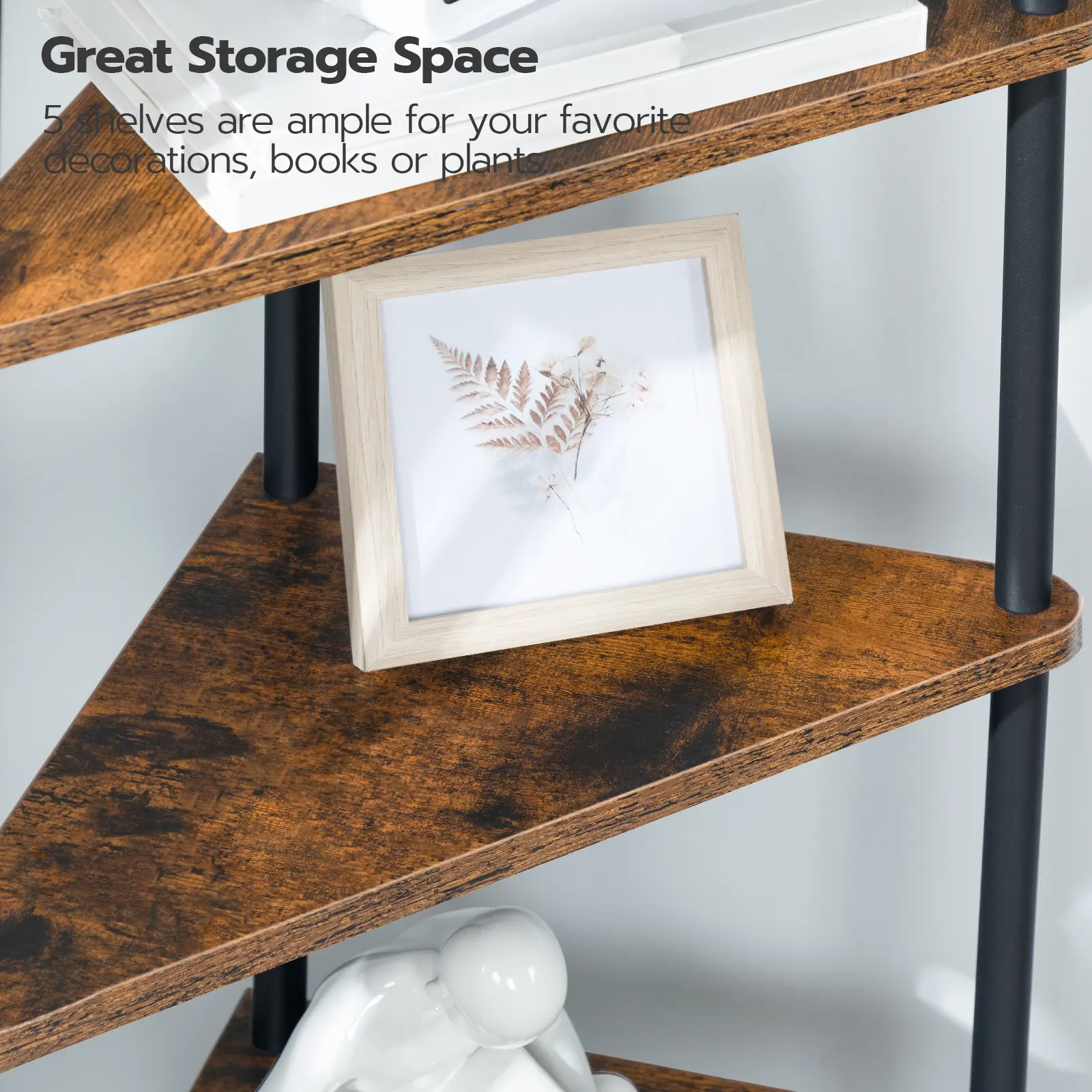 HOOBRO Corner Shelf Stand, Industrial 5-Tier Corner Bookshelf with Metal Frame, Plant Display Shelf, Corner Bookcase for Small Spaces, Rustic Brown#springtok
