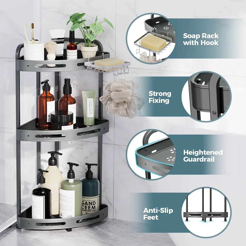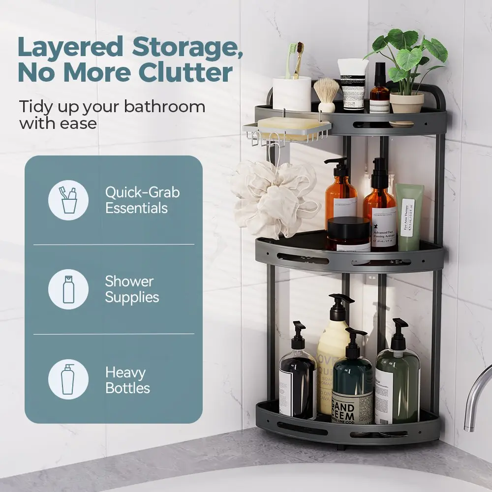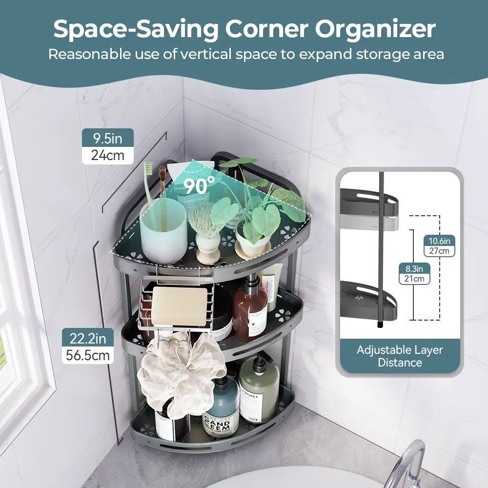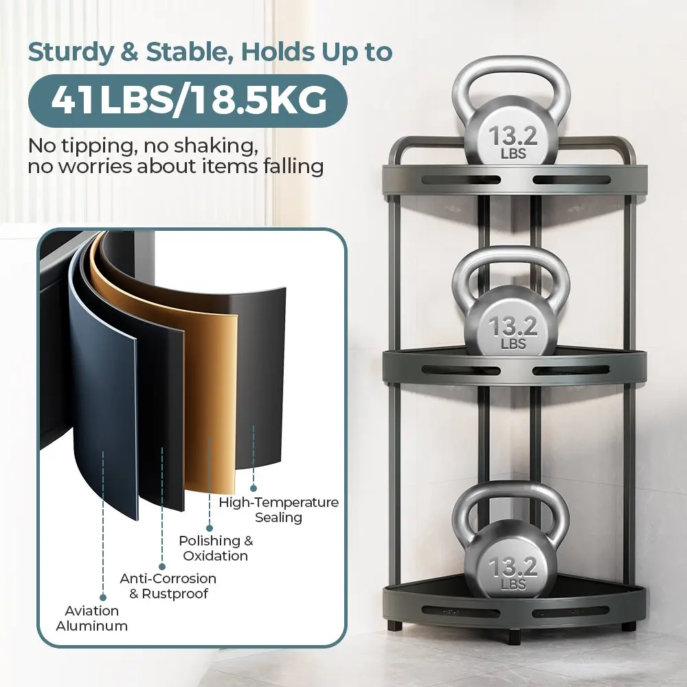 【Maximize Corner Space】3-Tier Corner Design saves space while providing large capacity. Each shelf supports up to 13 lbs, easily organizing all your large bath bottles.