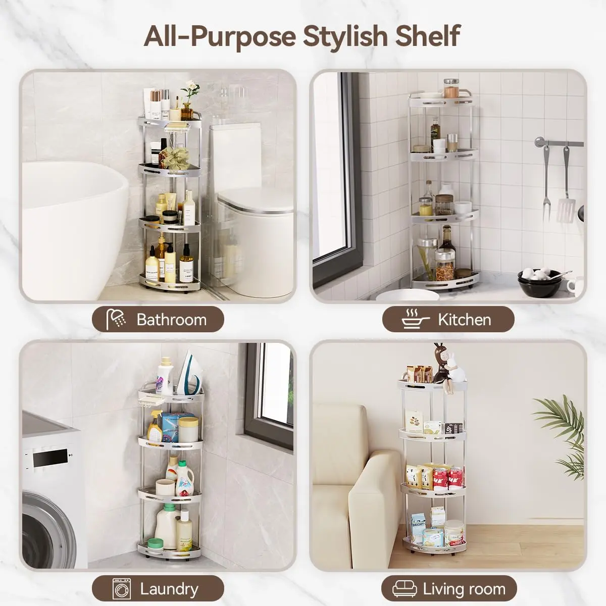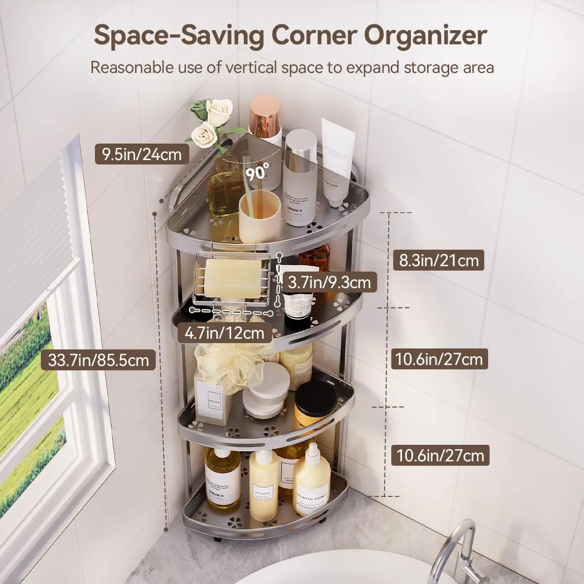 ·【Stylish Corner Shower Shelf】 This standing bathroom shelf has a stylish design that complements modern bathroom aesthetics. It comes with installation tools for easy assembly, allowing you to achieve your storage dreams in just minutes