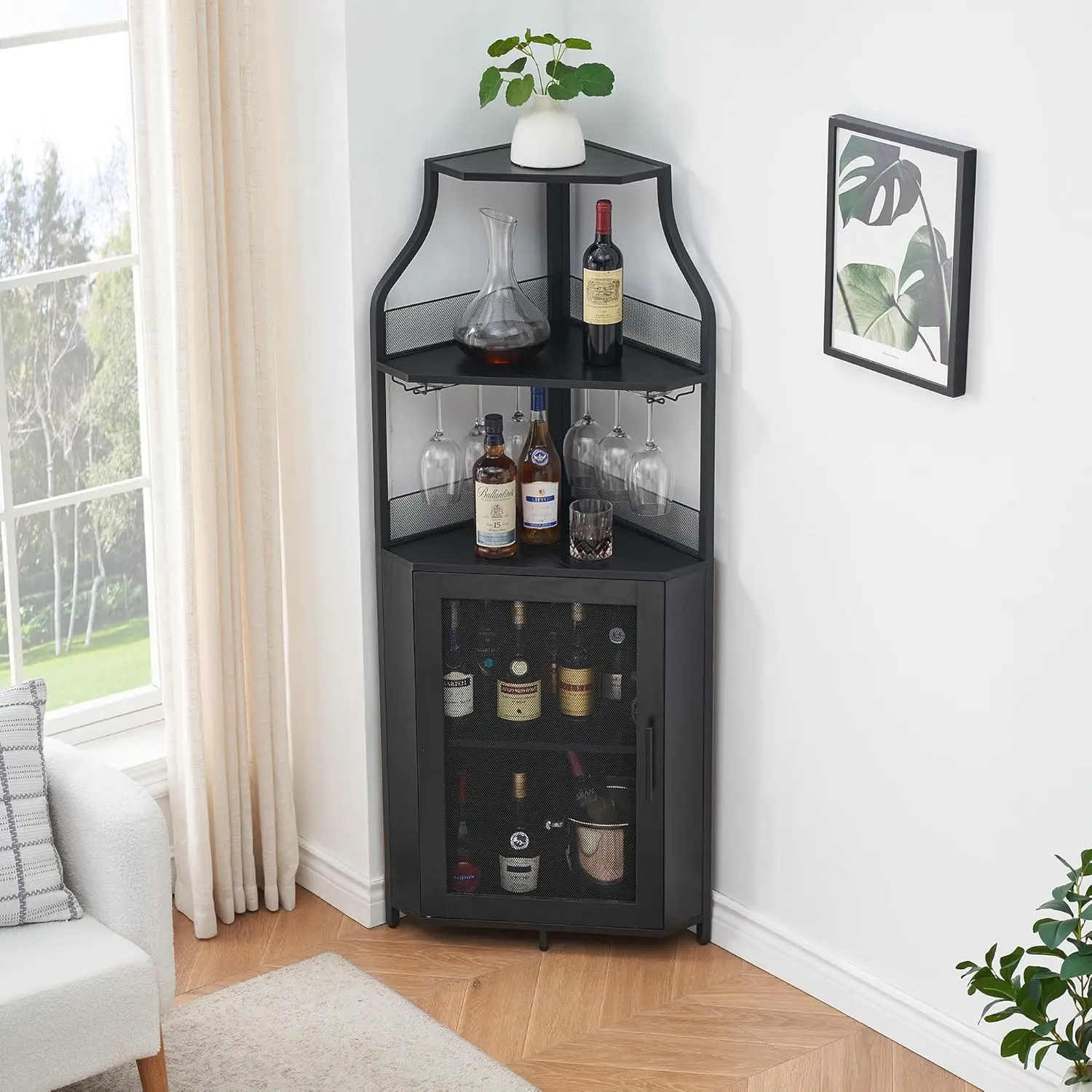 ·Sturdy and Durable Structure: Crafted with a sturdy construction, this corner wine cabinet guarantees stability and safety, providing secure storage for your wine bottles.Not only the appearance is elegant and gor Geous, but also durable and easy to clean