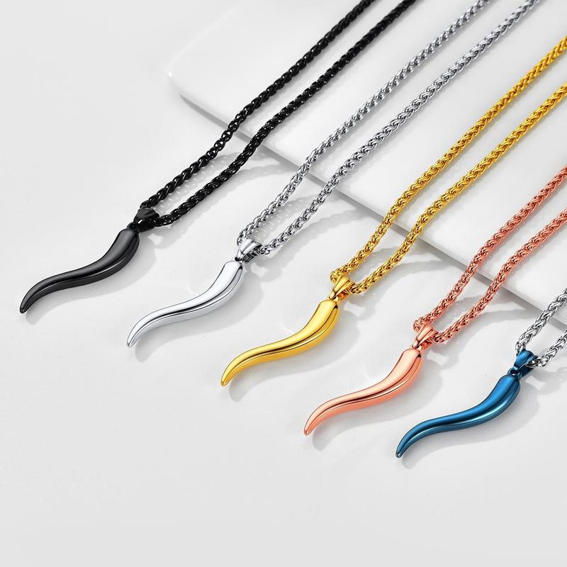 U7 Italian Horn Pendant for Men Women Cornicello Necklace 316L Stainless Steel Men Jewelry