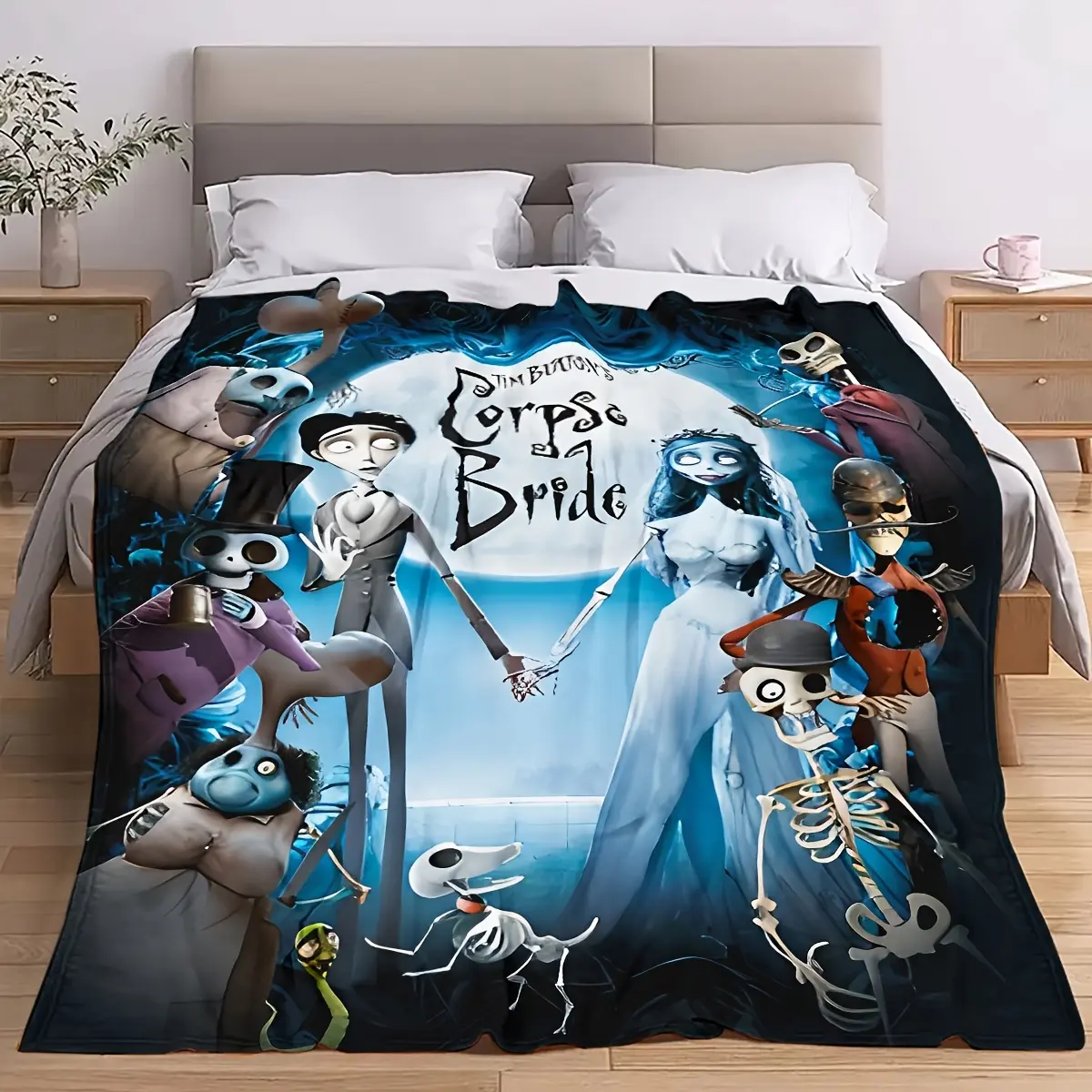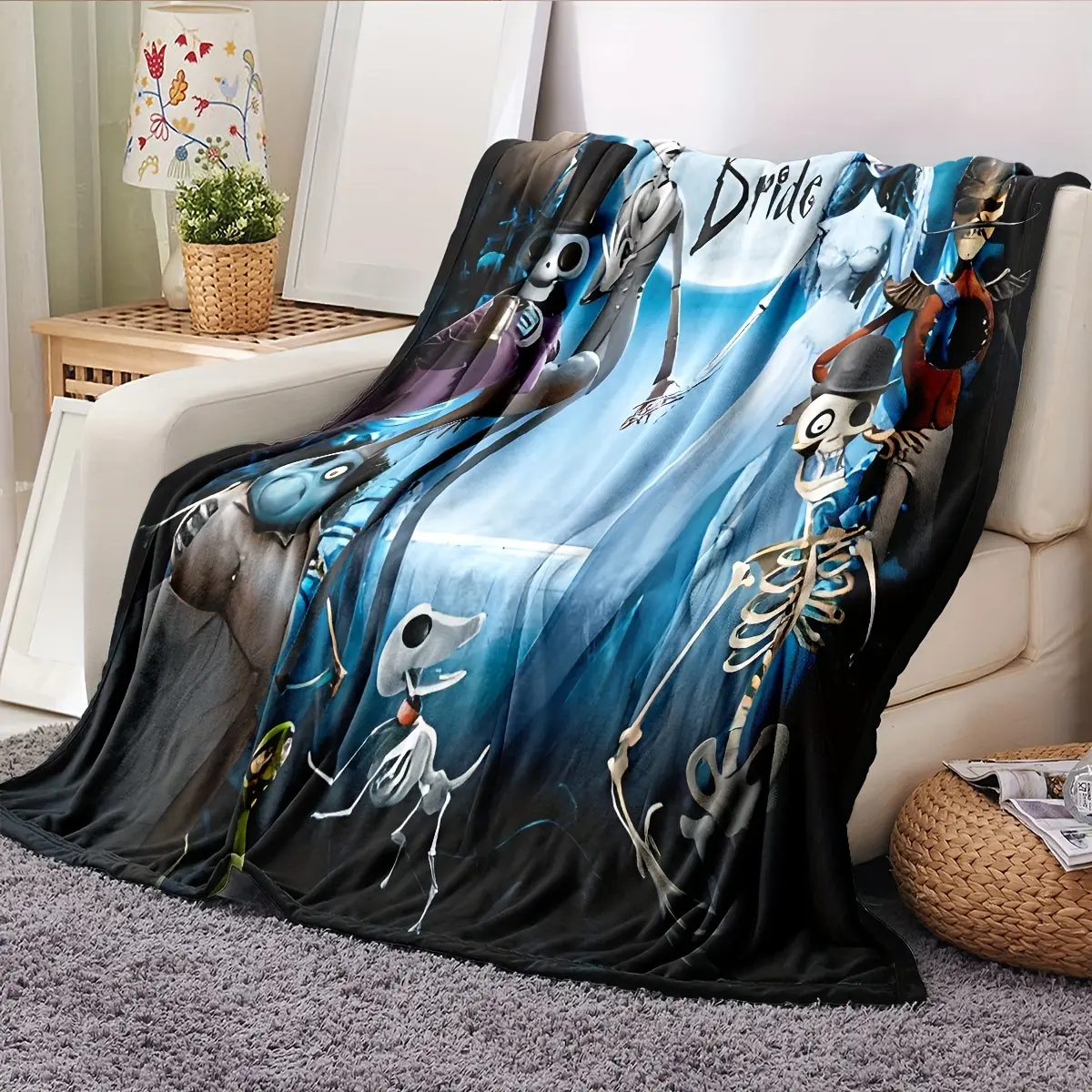 Corpse Bride themed flannel blanket - versatile, warm and comfortable for the sofa, office, travel - a great gift for all seasons