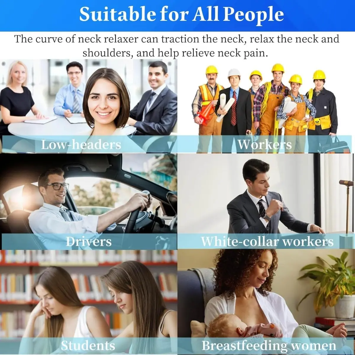 Usage:1. Put this cervical traction device on a flat place, lay on it.2. Adjust the position and find the comfortable place. Make your neck lying on the pillow, completely relax your neck, naturally sag your head.3. Naturally bent the knees and place your hands in front of your head. It can not only help blood circulation but also prevent you from falling asleep when using.4. Slightly adjust the position of your head. Suspend your head and stretch neck by natural gravity.Note:1. Please use it moderately. If the number of times is too high and the strength is too high, it will cause cervical muscle damage.2. This product Can't be used as an ordinary pillow all night long, but gently stretch and relax for 10 minutes a day, can help to relax your neck and shouldersNECK STRETCHER FOR PAIN RELIEF - This neck stretcher relieve neck pain in just 10 minutes, simple and effective physical solutions for cervical traction device pillow effectively helps provide relieve neck/ shoulder pain and pressure, TMJ and sore muscles. (Can't be used as an ordinary pillow all night long)ERGONOMIC NECK TRACTION PILLOW - The ergonomic C-curve design perfectly matches the human cervical spine, It provides a perfect cervical traction pillow. When you lie down, it offers vertical, horizontal support, and curvature stretch for neck traction, allowing the neck stretcher to gently position the head to reduce spinal pressure, help users maintain a good spinal posture.NECK RELAXER - 6 points target the areas in the neck and lower head, help relax muscles and decompress the pressure. Gentle stretching can help relieve neck stiffness, provide neck support, help reduce the pressure on the cervical spine, and effectively help relieve chronic neck pain.ELASTIC STRETCH - Cervical traction neck pillow made of high-density elastic self-skinning foam, which is firm and strong, providing a firm, lightweight base. The neck traction device is not easy to deform and can provide strong support for the cervical spine. It can be used on hard surfaces, such as home floors, outdoor flat ground, and it can also be used on soft surfaces, such as sofas, beds or yoga mats.SAFE AND EFFECTIVE! - This Neck and Shoulder Relaxer can provide neck traction, relax the neck and shoulder, and help relieve neck pain. Great for staff, office workers, students, drivers and people who need to bow their heads for a long time. People can enjoy the cervical stretcher more comfortably during work or travel to help relieve neck fatigue.