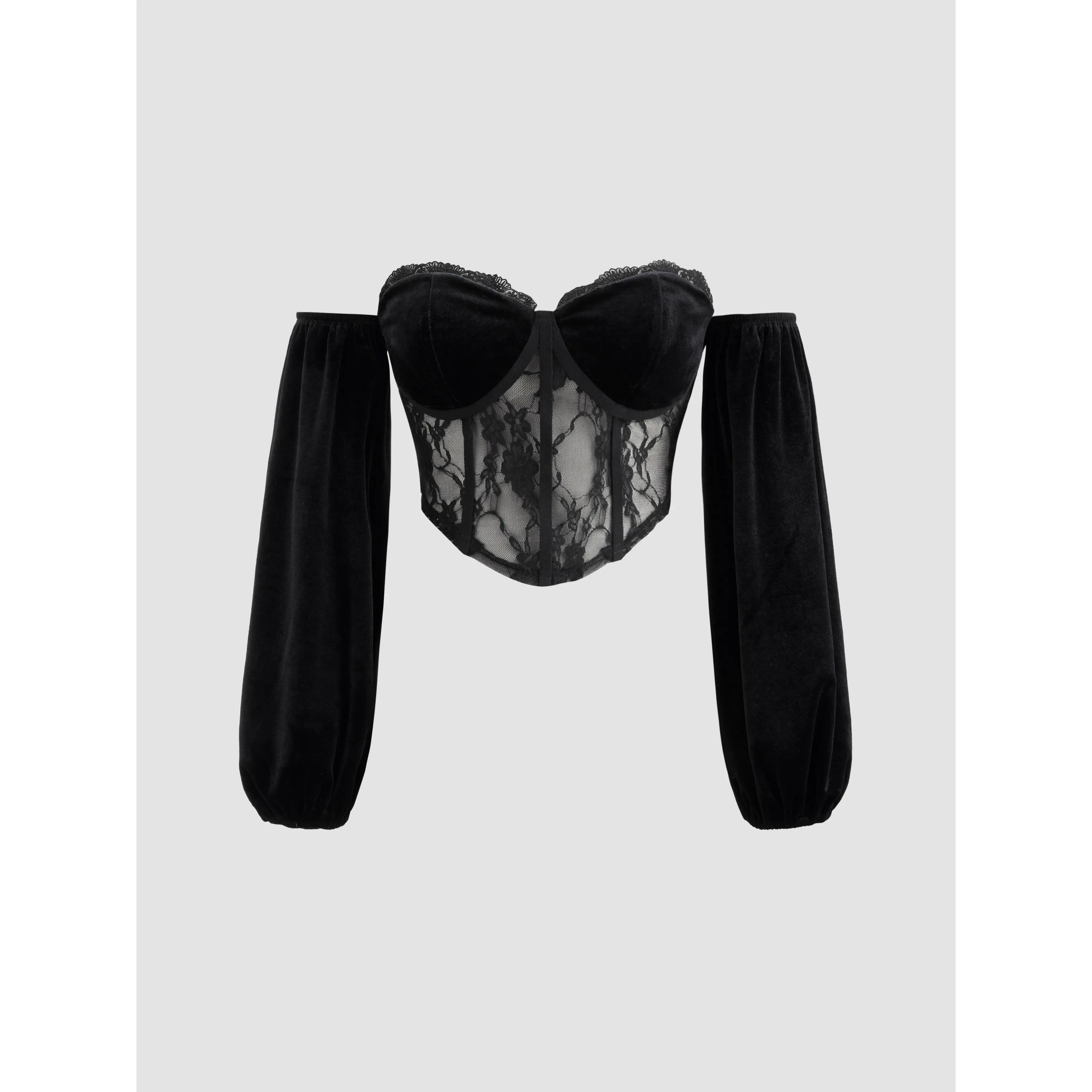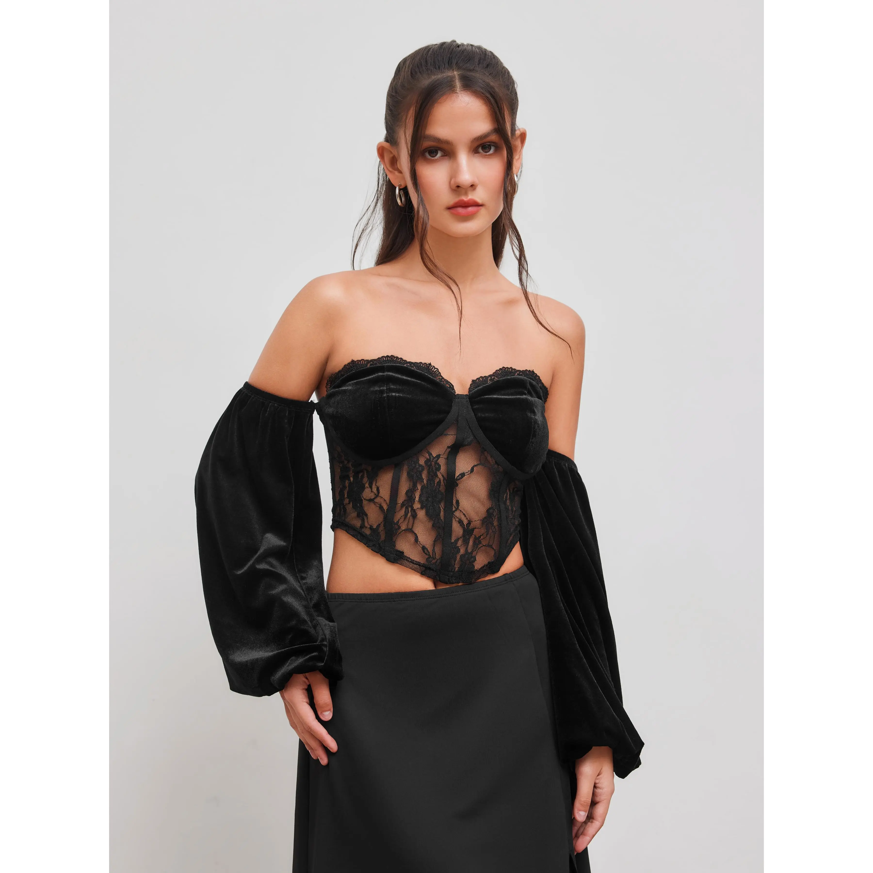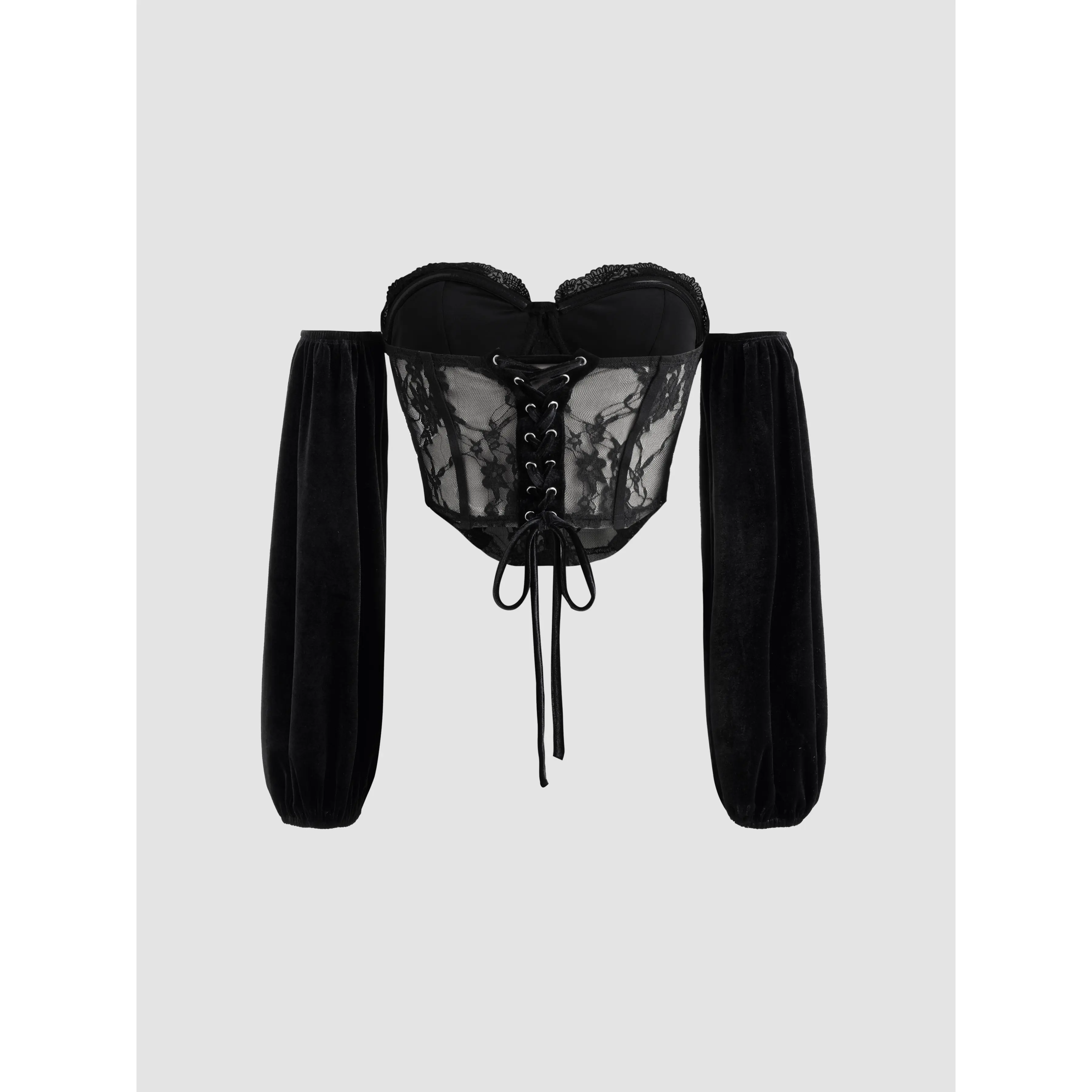 5. Cider [size 2-10] Velvet Off-shoulder Lace Tie Back Corset Crop Top
