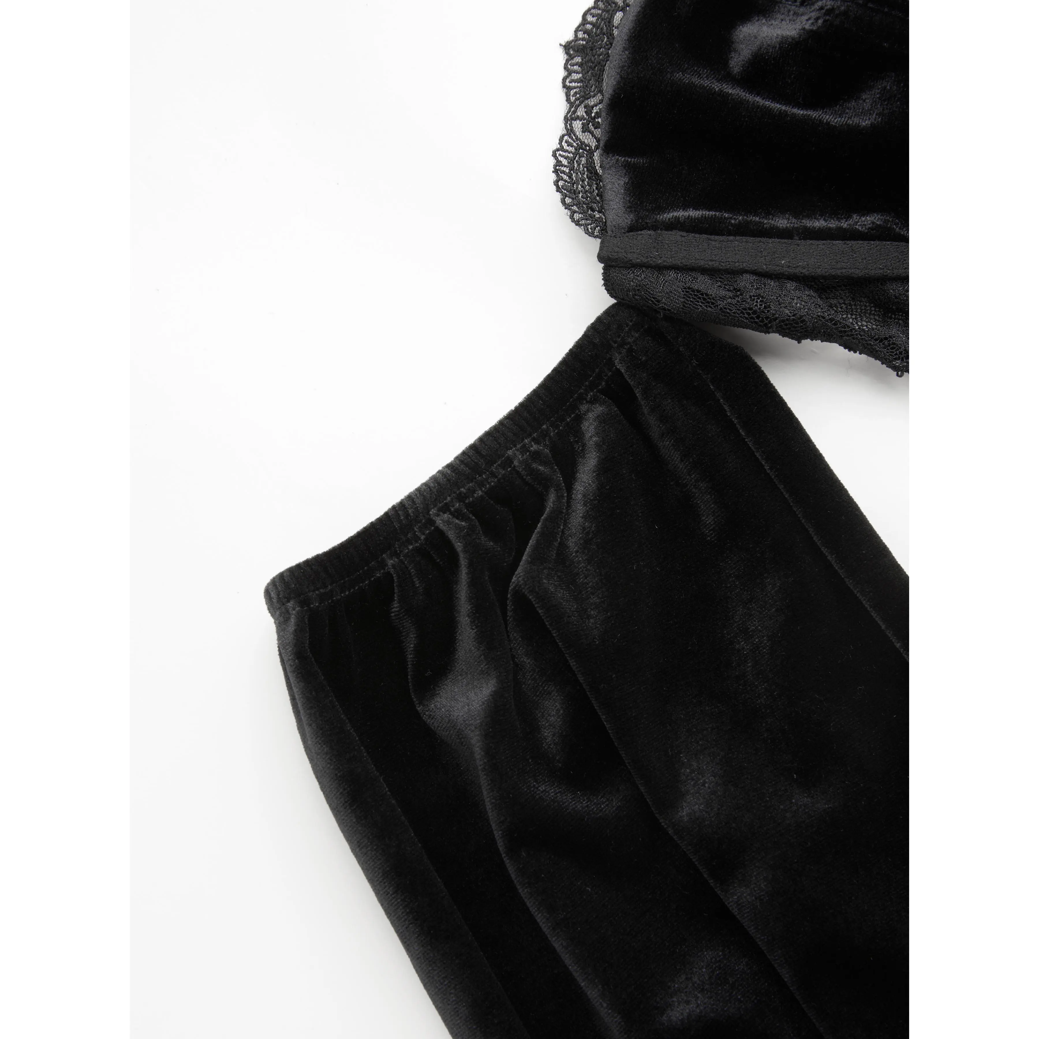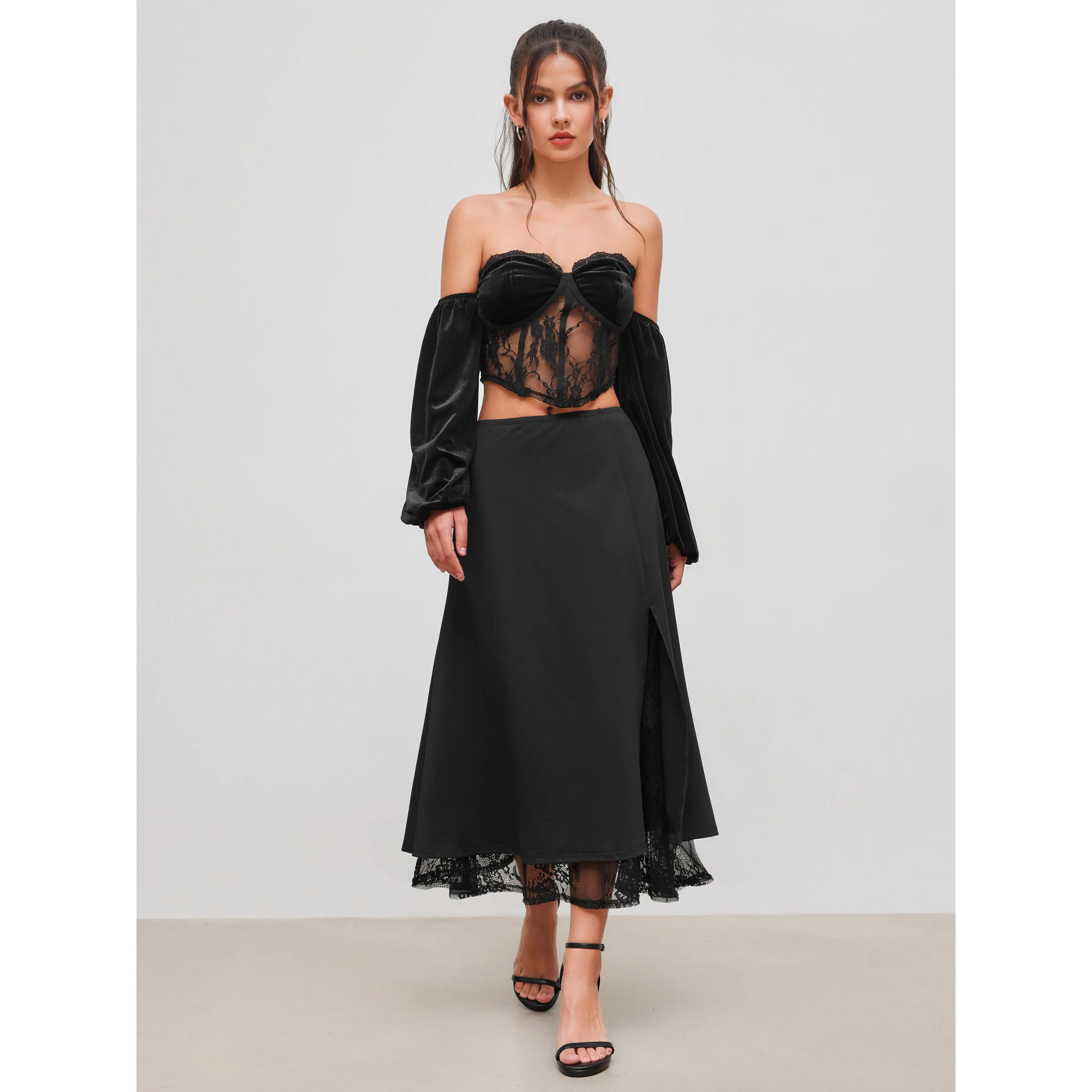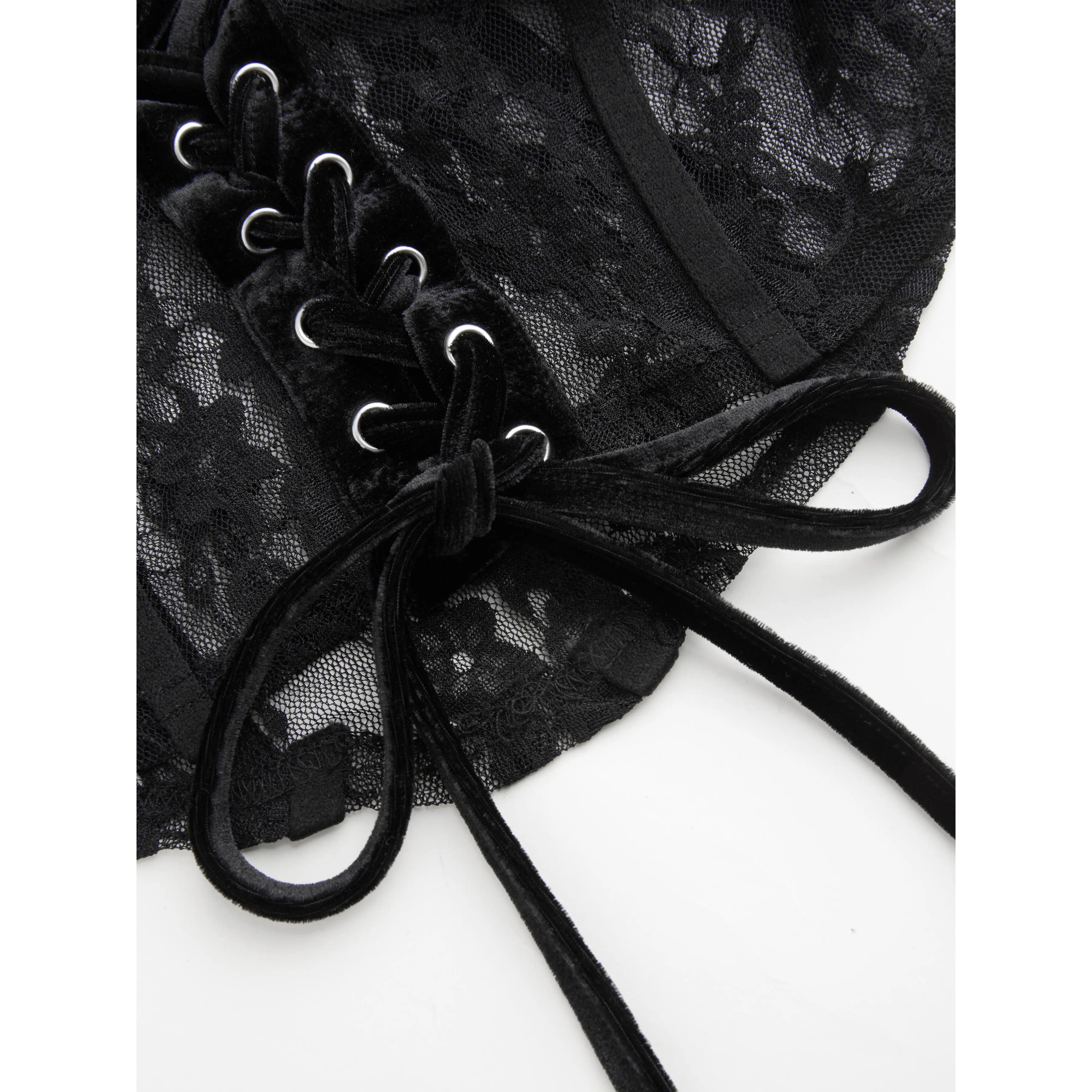 5. Cider [size 2-10] Velvet Off-shoulder Lace Tie Back Corset Crop Top