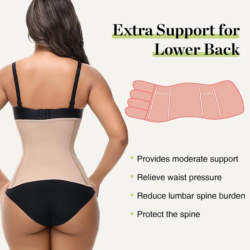 There are 4 steel bones in belly band postpartum belly wrap, which fit the human body curve more closely and won't roll up the edges. This belly band provides just the right amount of support to relieve the compression on the back and reduce the burden on the lumbar spine and abdominal muscles, relieves back discomfort.