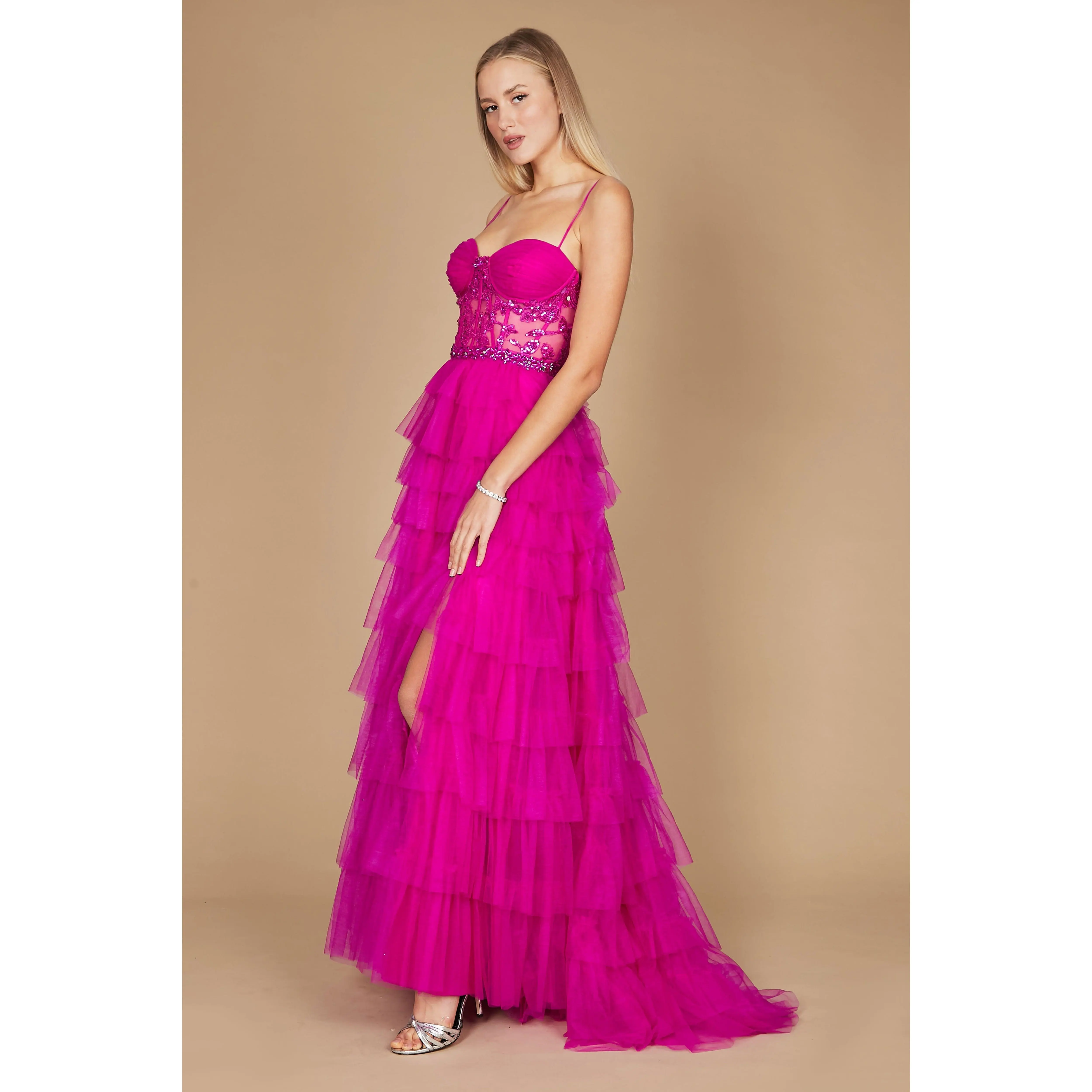 The Dylan Davids Long Fuchsia Corset Prom Ball Gown, available at The Dress Outlet, is a masterpiece of elegance and style. This enchanting gown boasts a corset-style bodice that accentuates your figure, while the striking fuchsia color adds vibrancy to your look. The flowing ball gown skirt exudes grace and luxury, making it perfect for proms, balls, or any formal occasion. With its meticulous detailing and exquisite design, this dress ensures you'll be the center of attention. Make a bold and unforgettable statement with this exquisite fuchsia corset gown, designed to leave a lasting impression wherever you go.